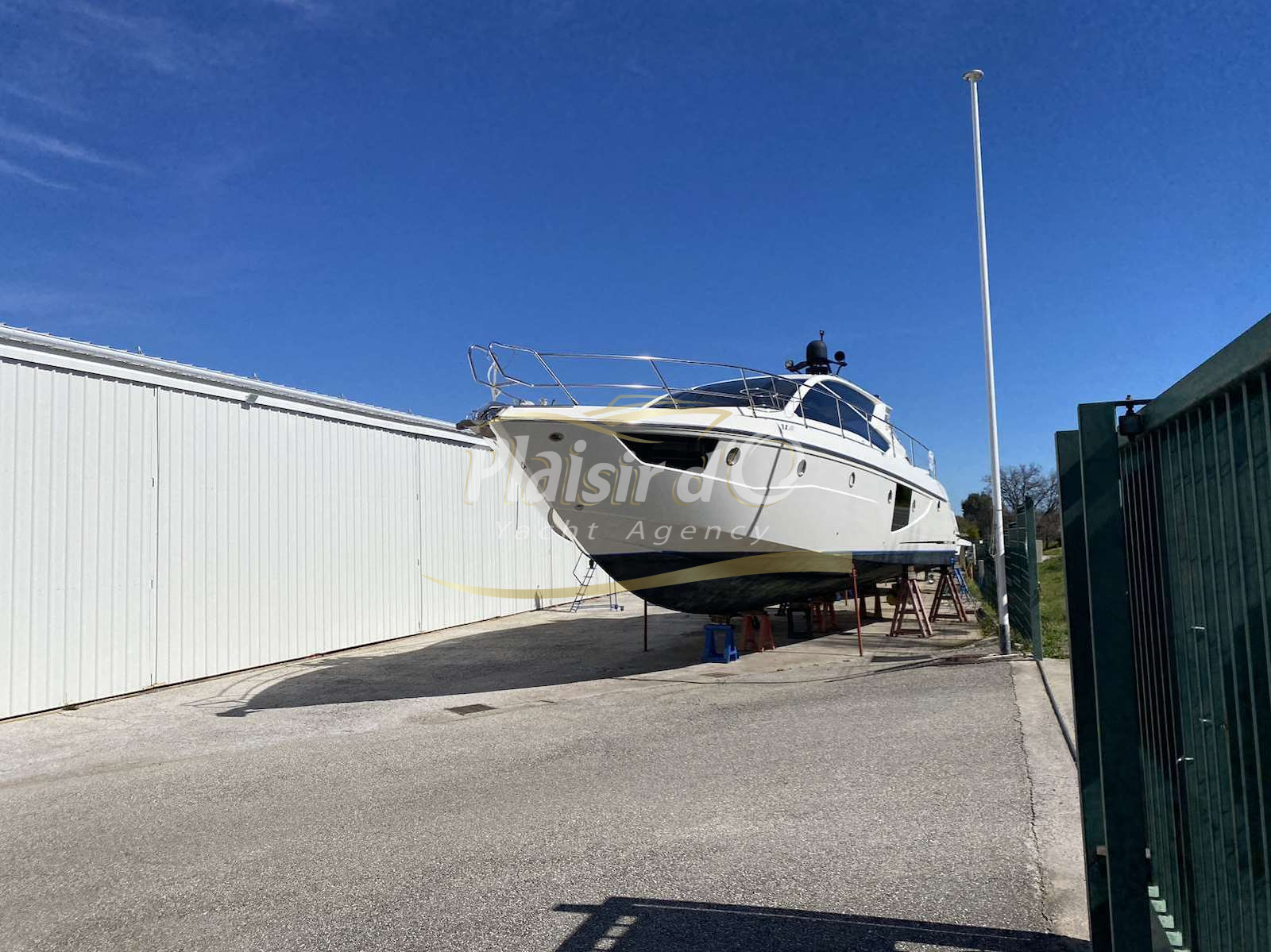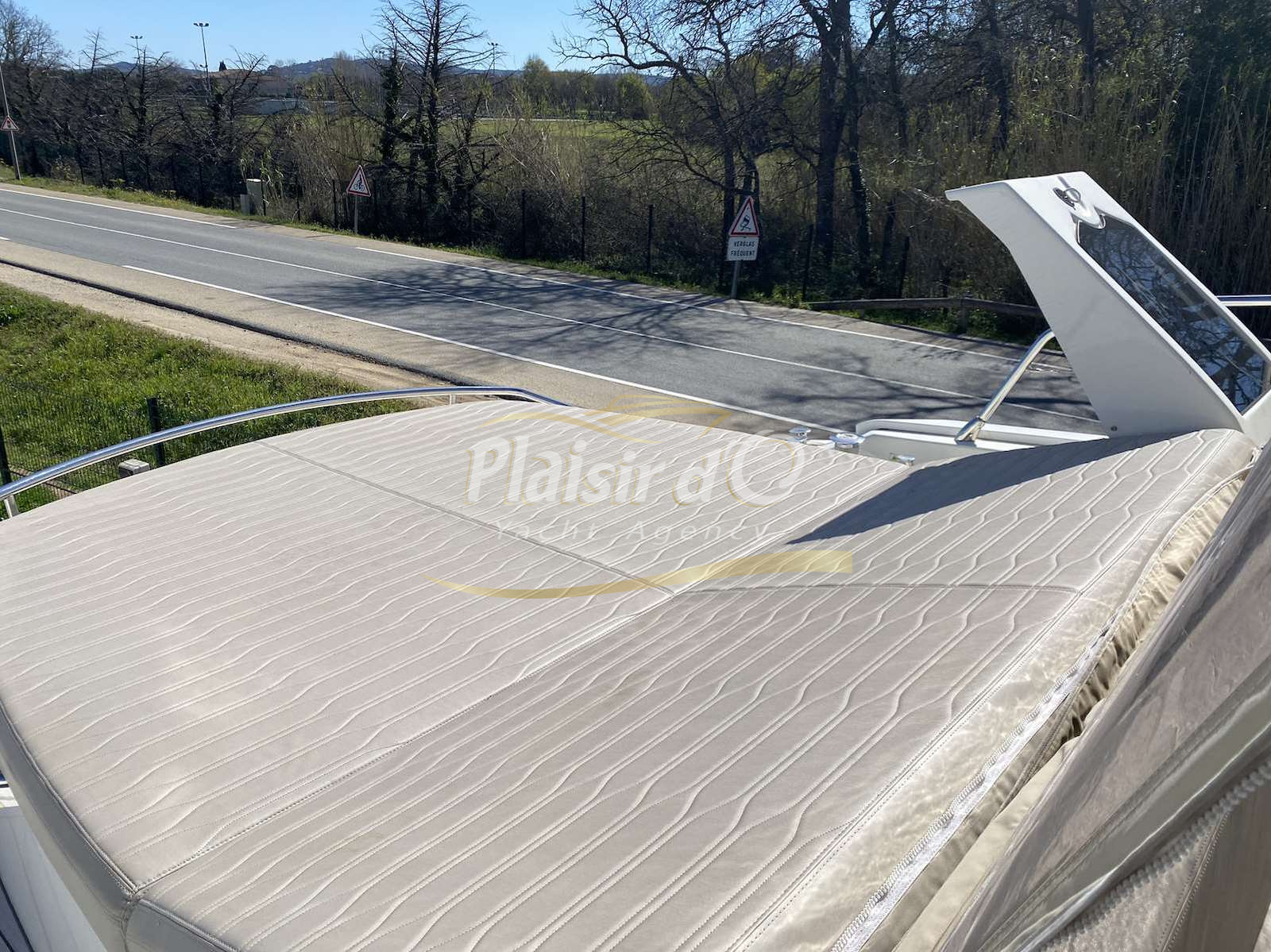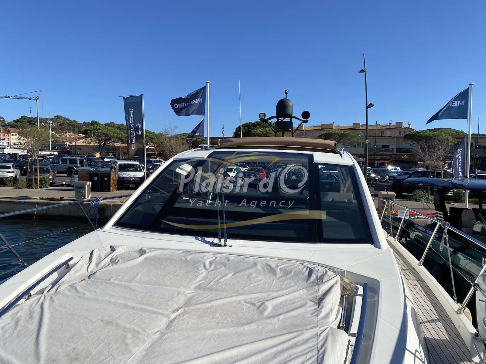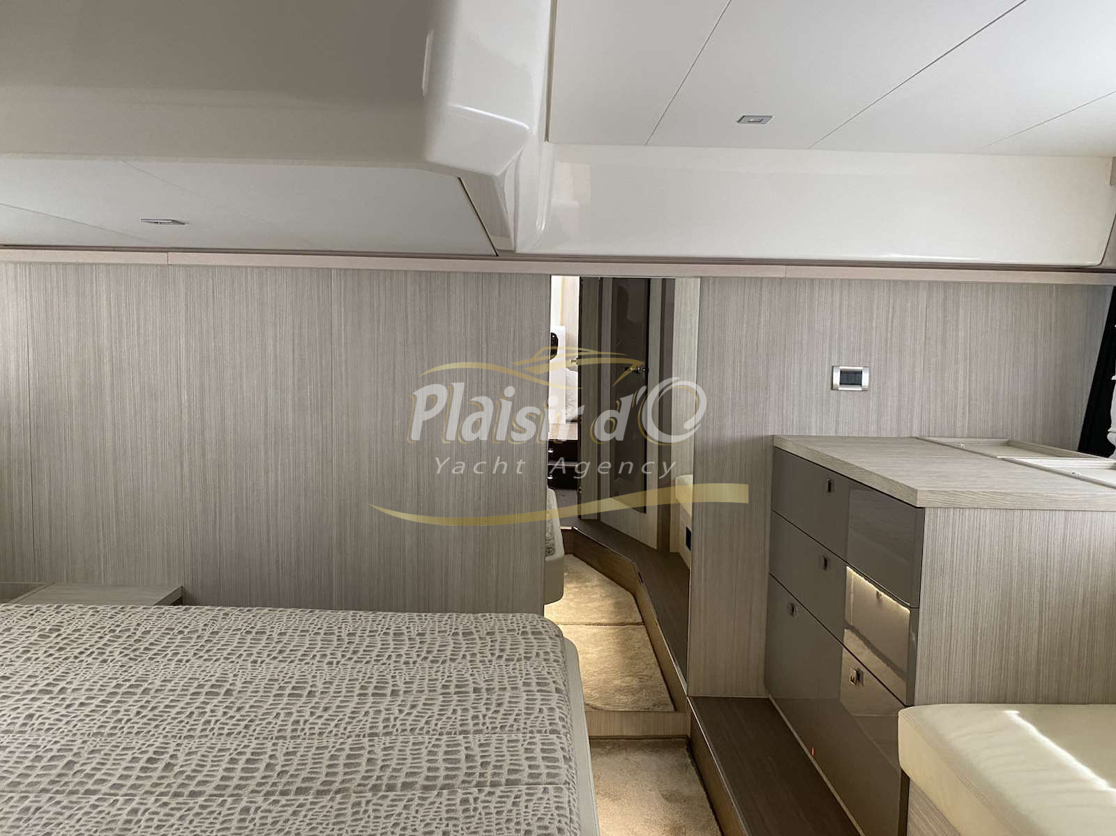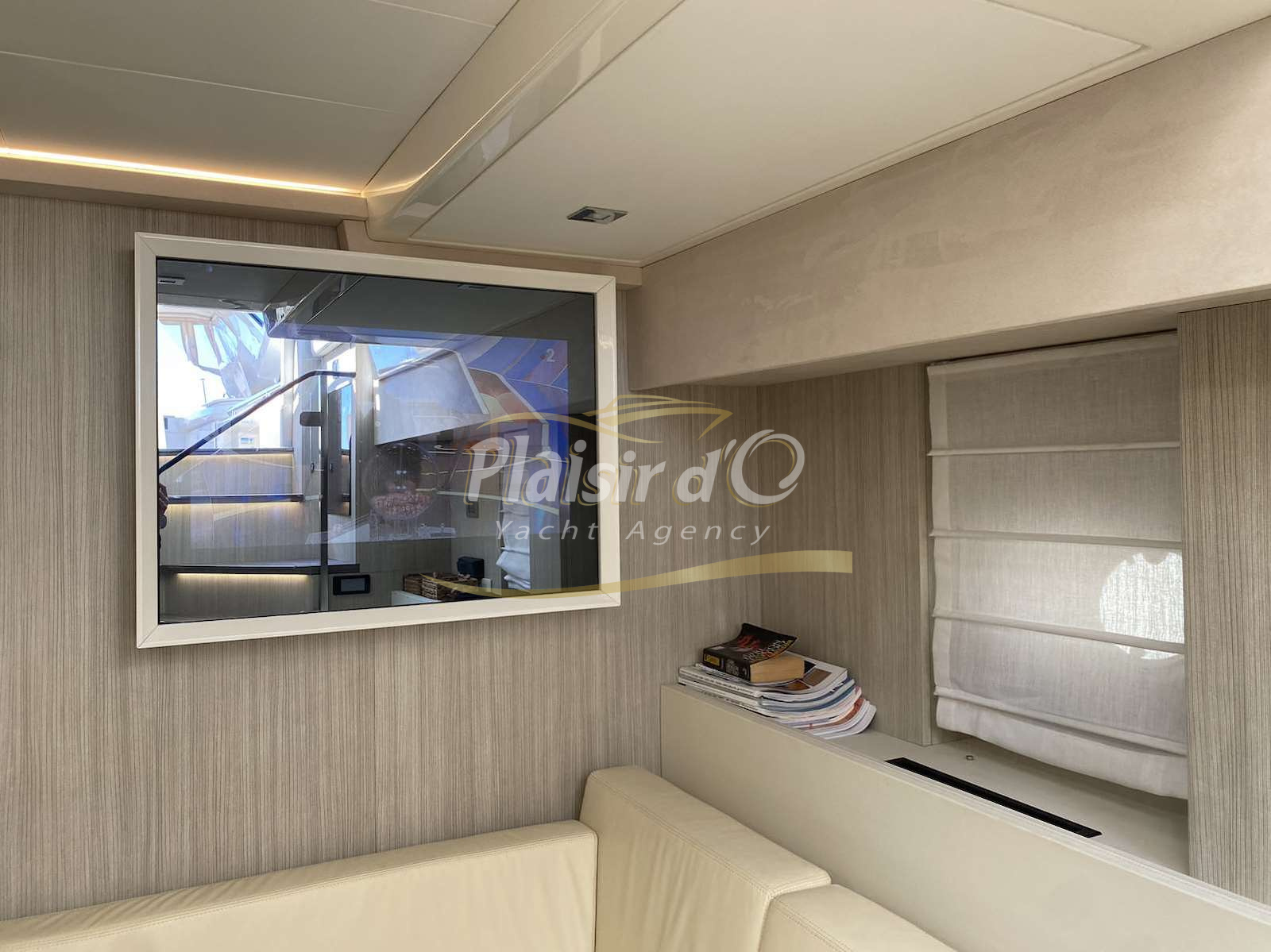 À l’extérieur, bains de soleil avant et arrière, cockpit convivial, passerelle hydraulique et plateforme de bain hydraulique en teck complètent ce yacht parfaitement équipé, idéal pour des croisières haut de gamme en famille ou entre amis.