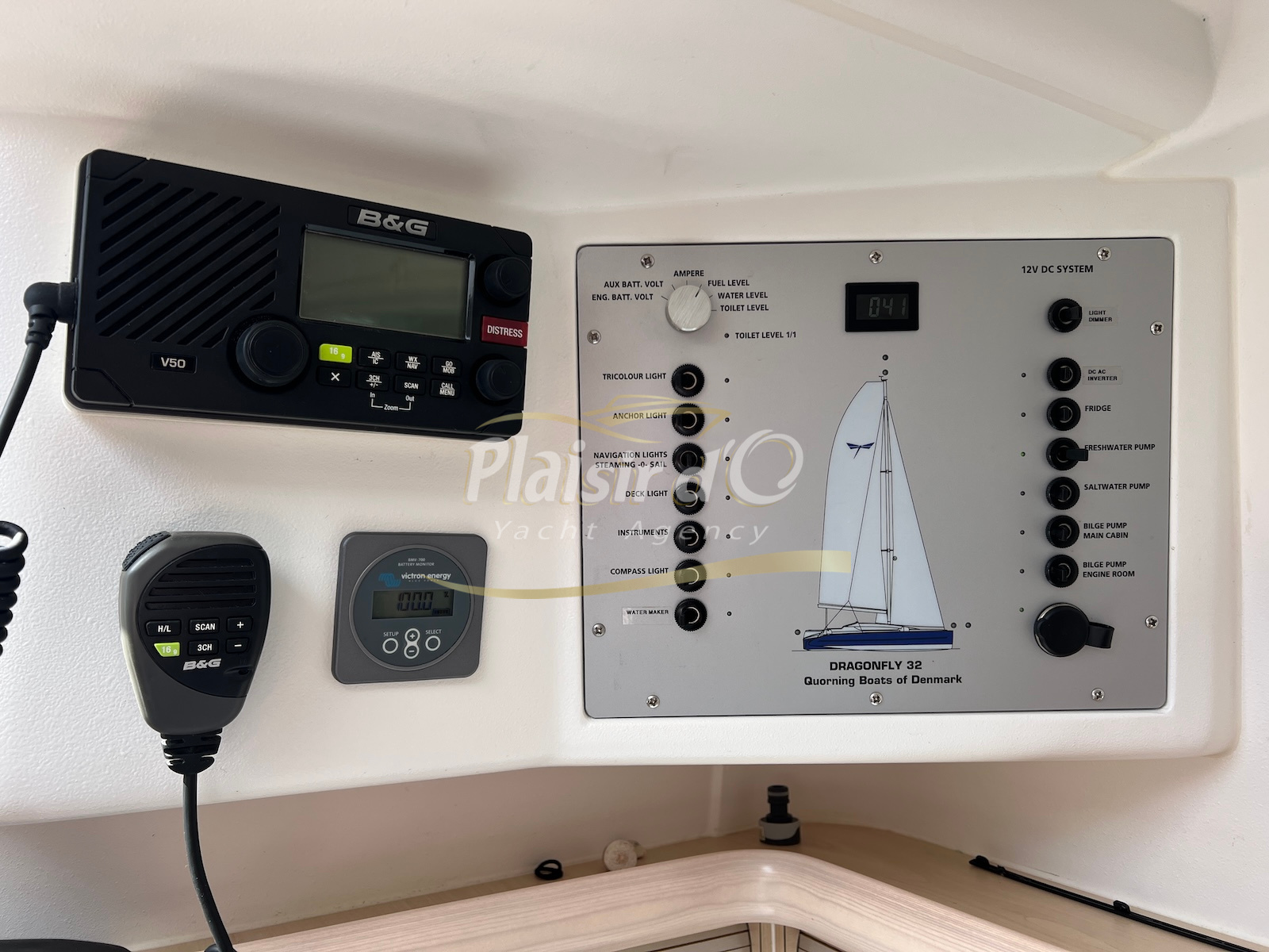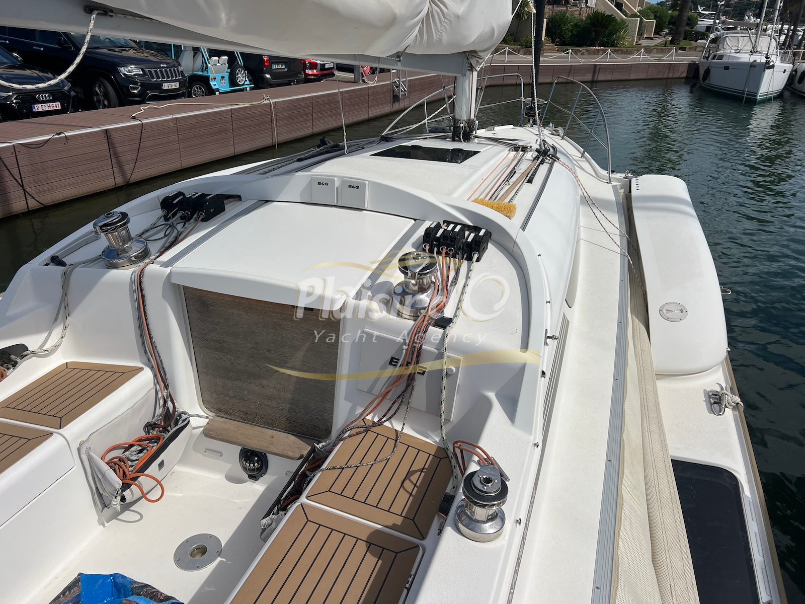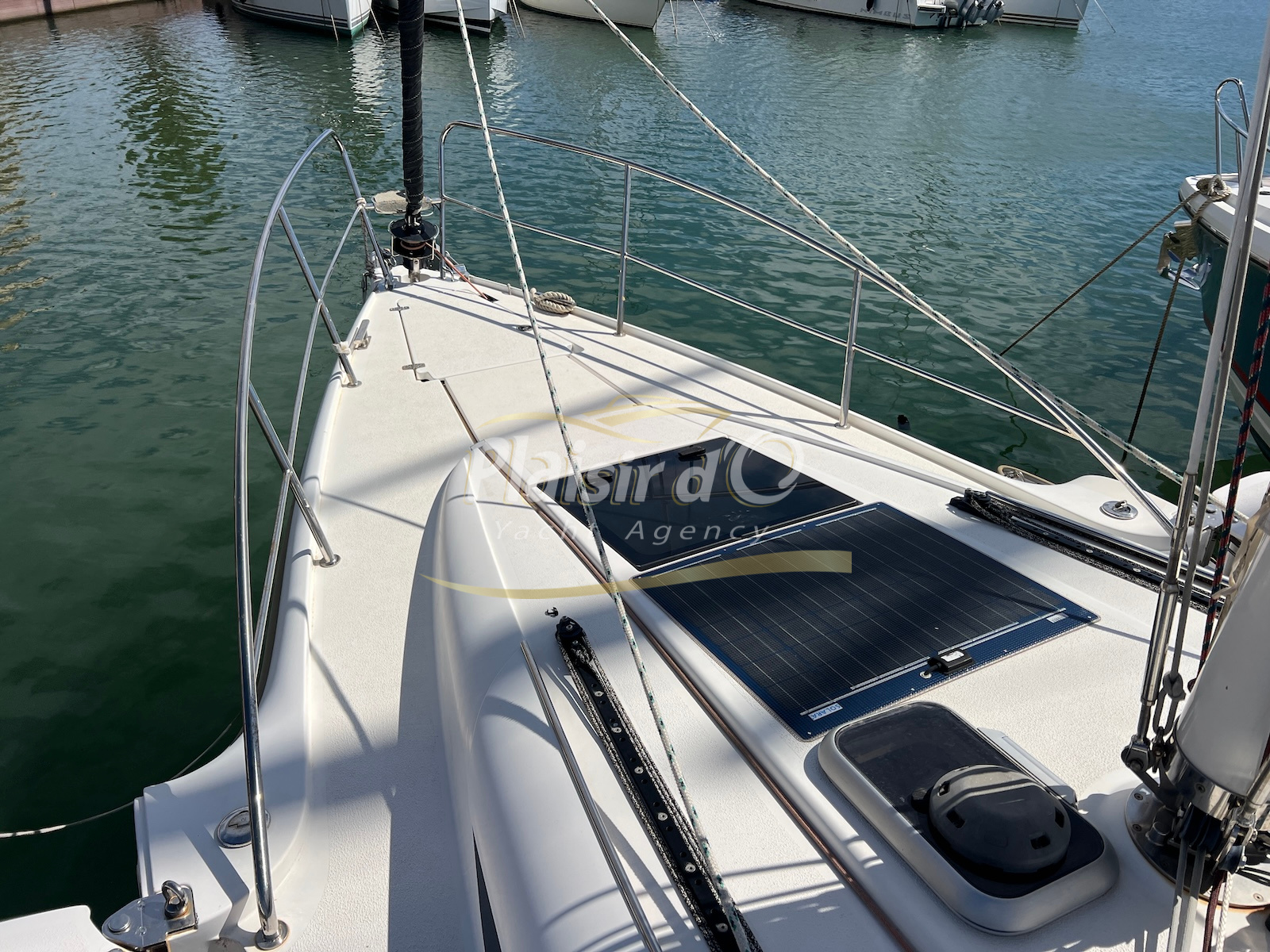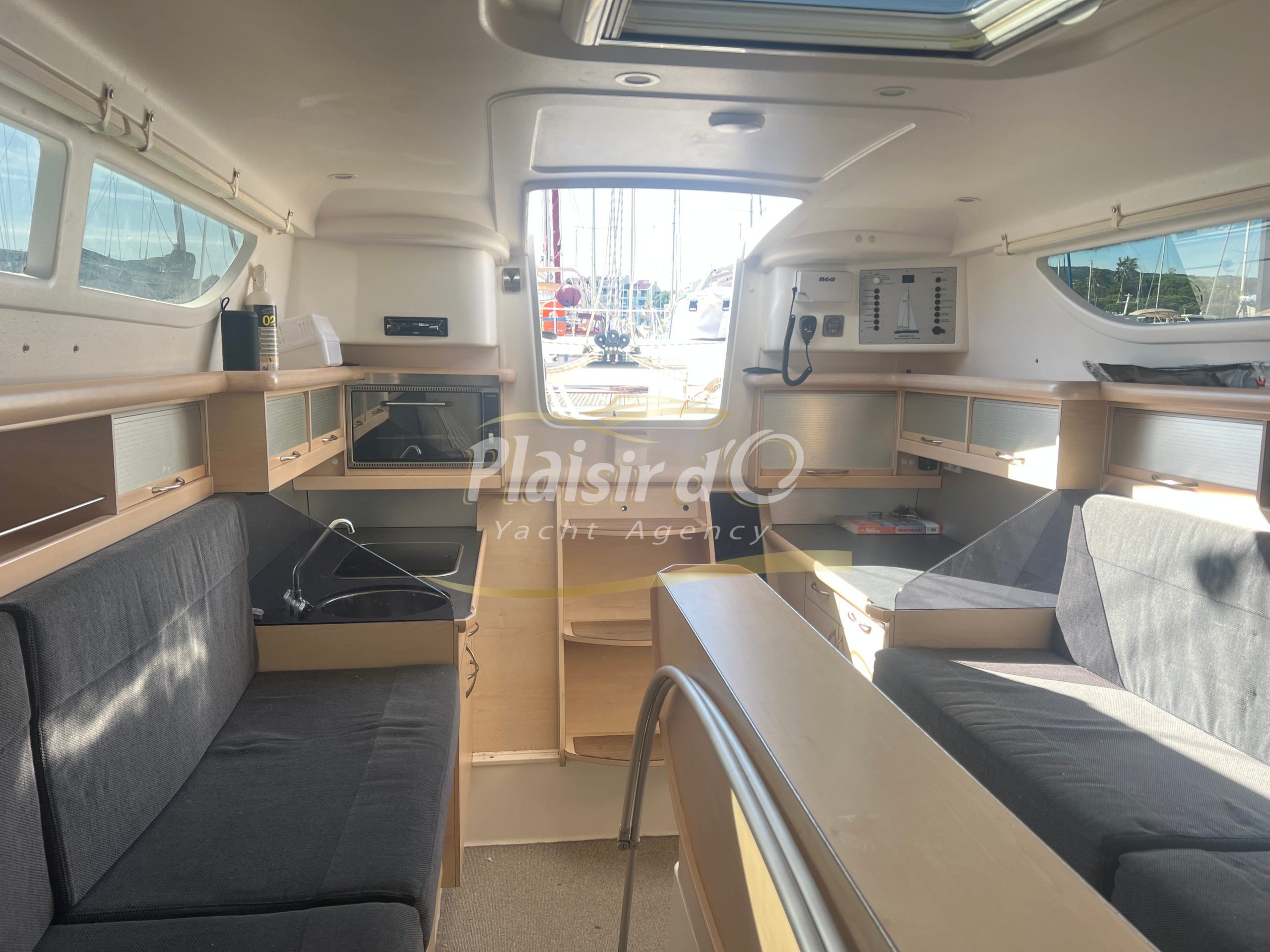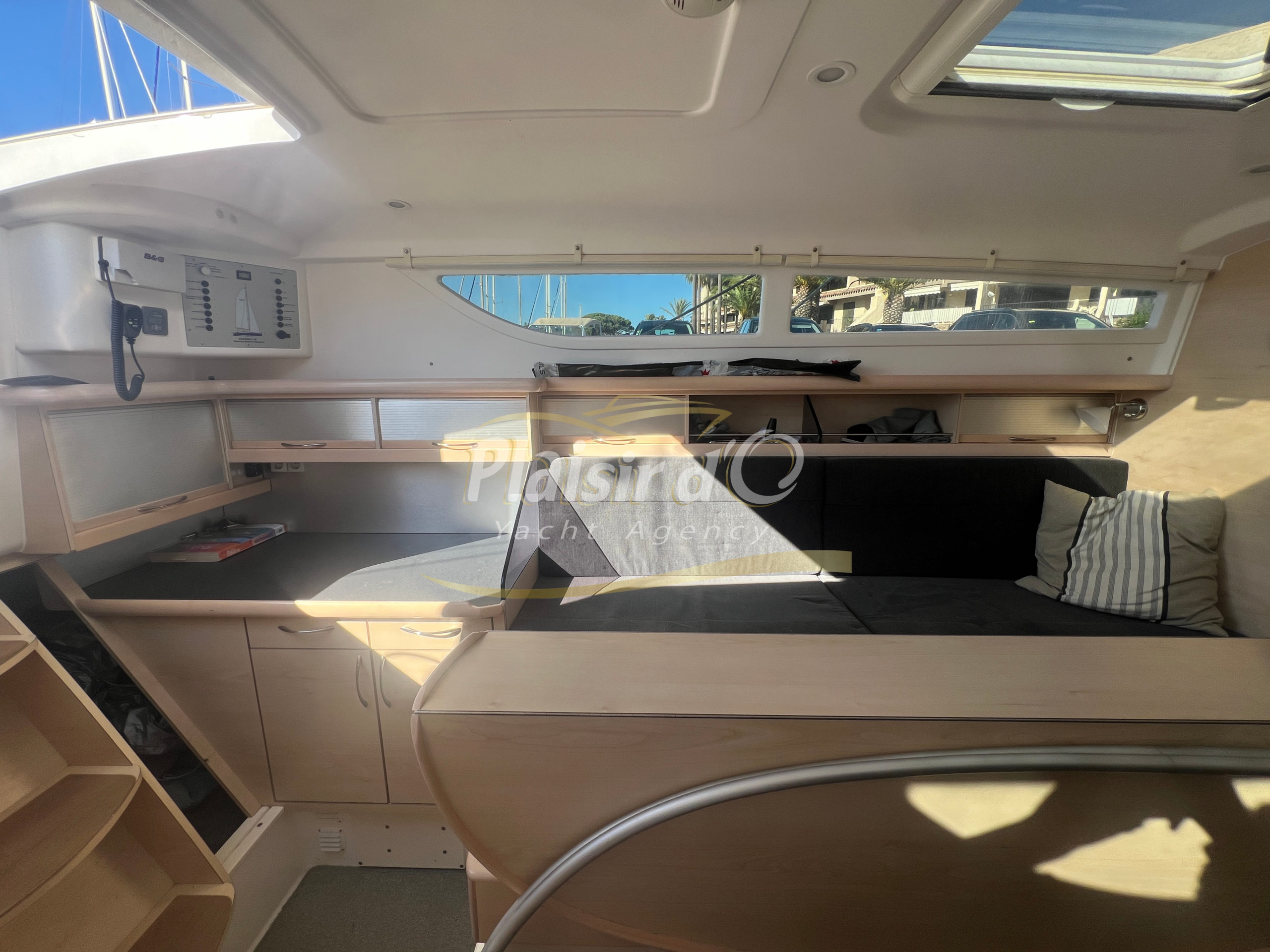 Côté énergie, le bateau est autonome avec 5 panneaux solaires, une batterie lithium 200Ah et un chargeur performant. L’électronique B&G est complète (GPS Zeus3 12’’, pilote automatique Triton, VHF, sondeur, etc.), idéale pour la navigation hauturière.