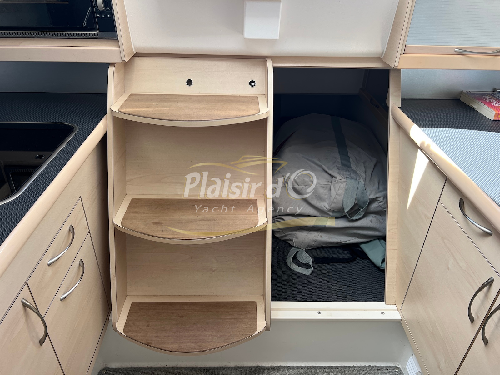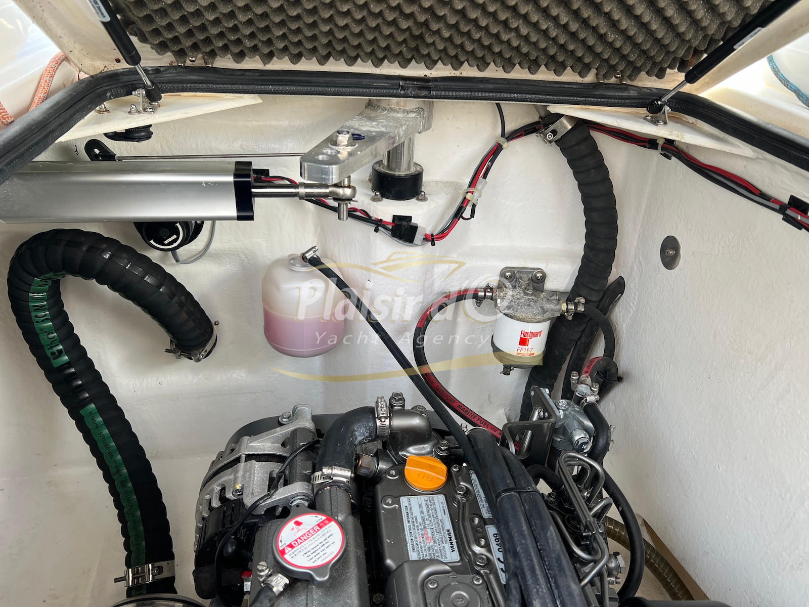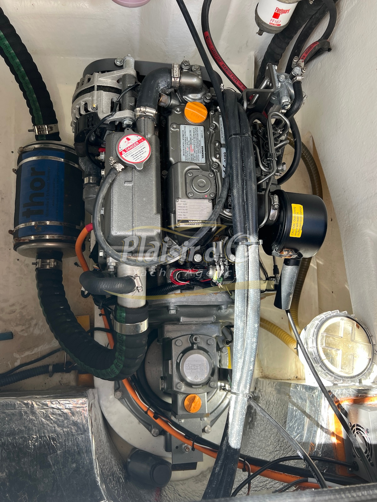 Grâce à sa motorisation Yanmar de 21cv (450h seulement) et son propulseur d’étrave rétractable, les manœuvres sont aisées, même en solo.