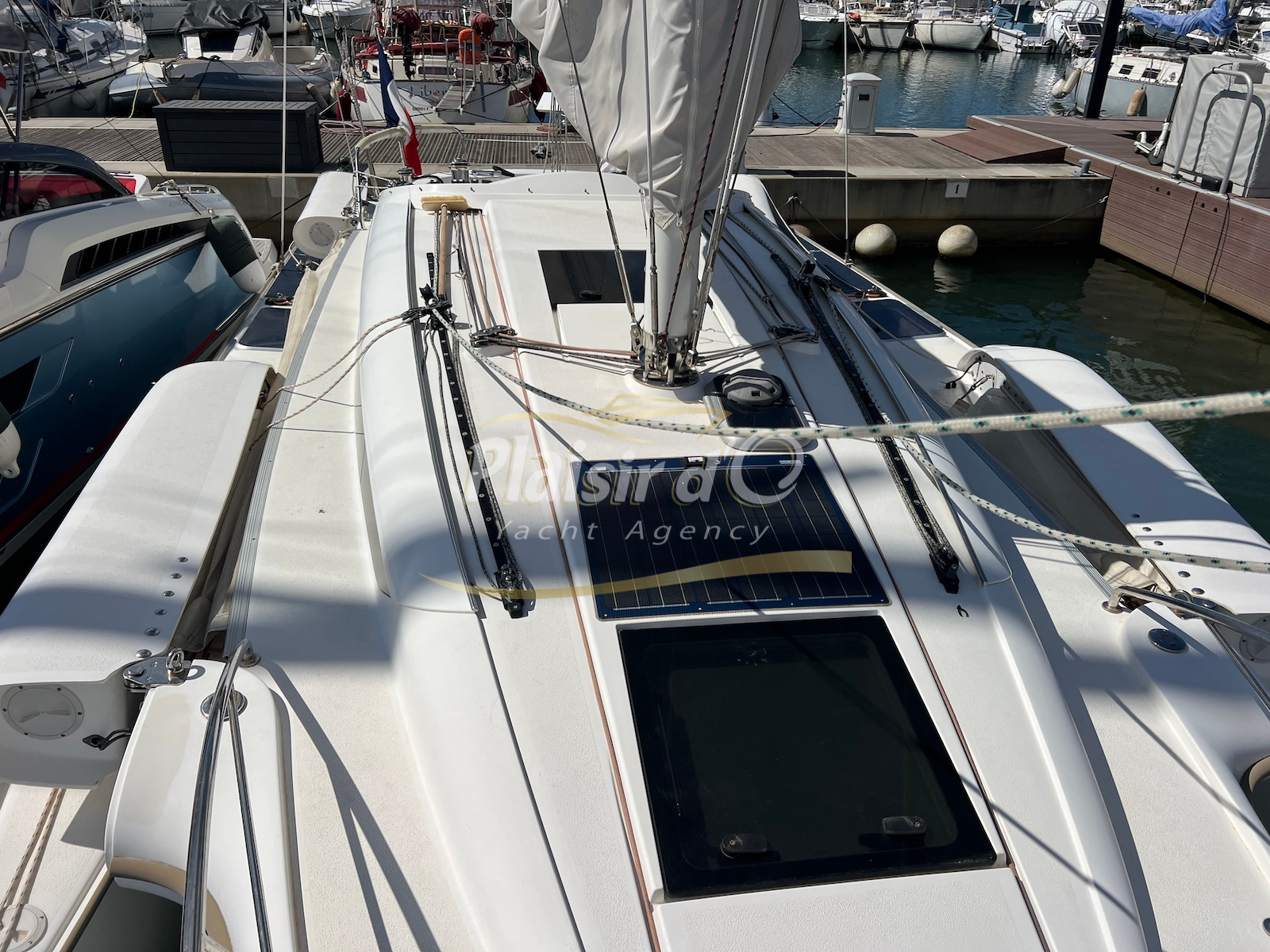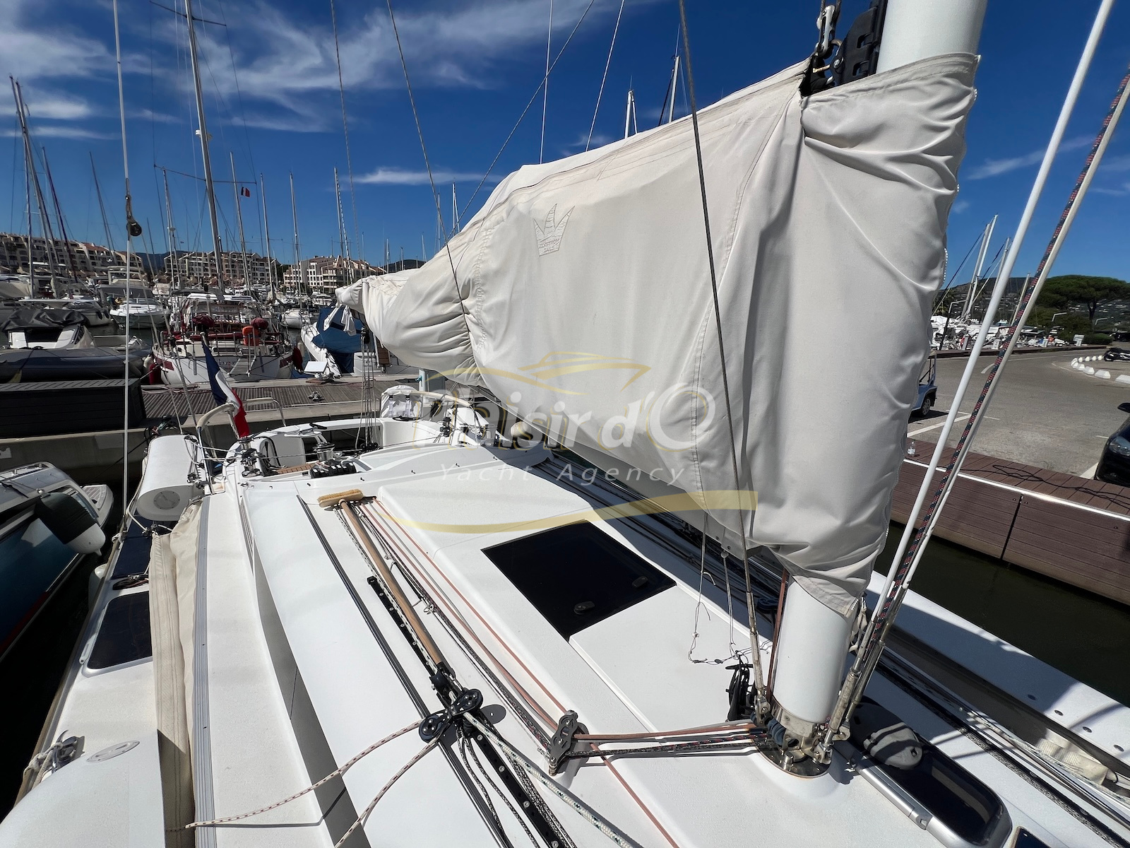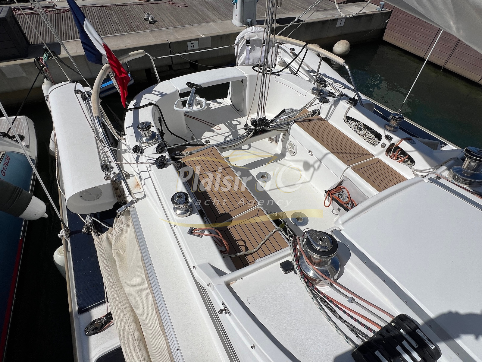 Enfin, le gréement performant (mât carbone, GV et génois EPEX, Code 0 neuf, winch électrique) ravira les amateurs de belles sensations sous voiles.