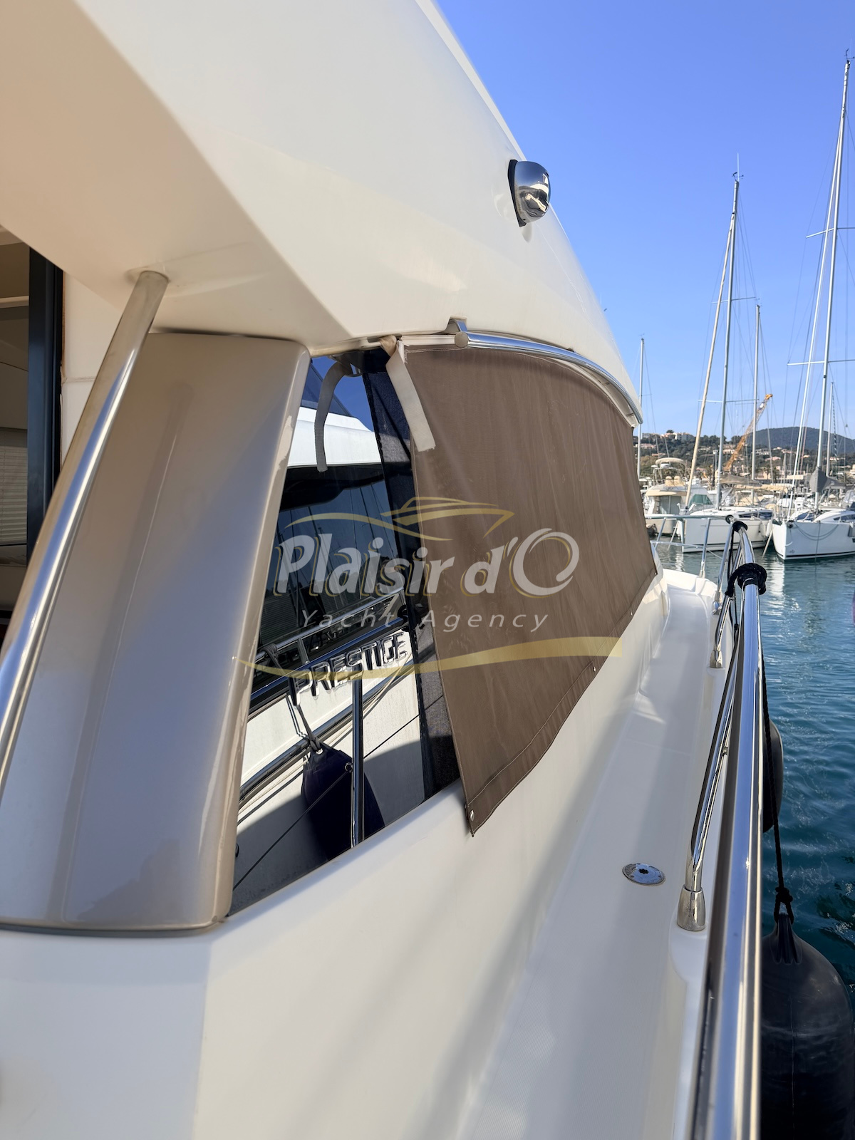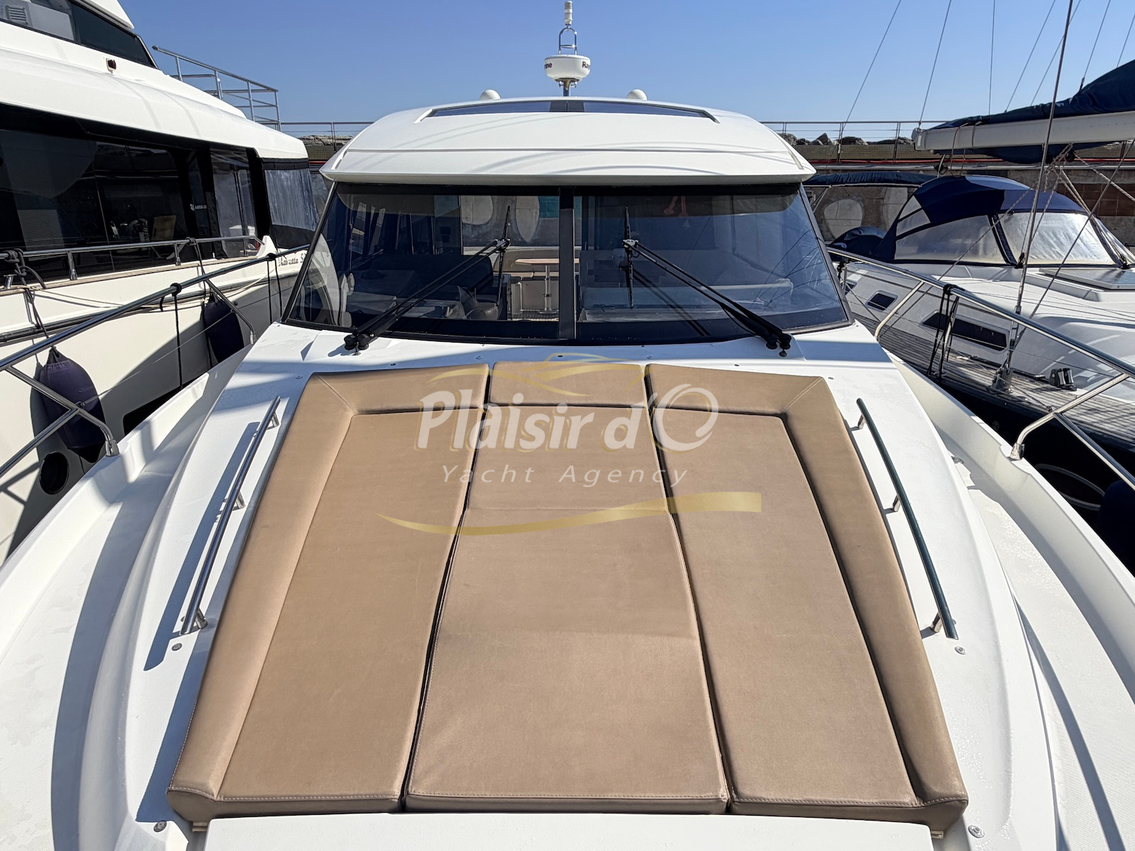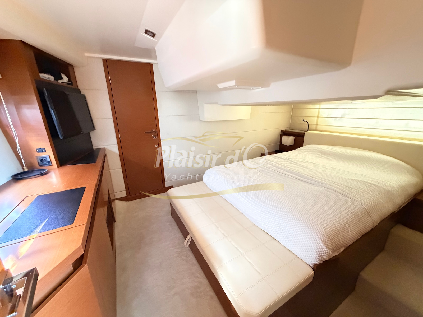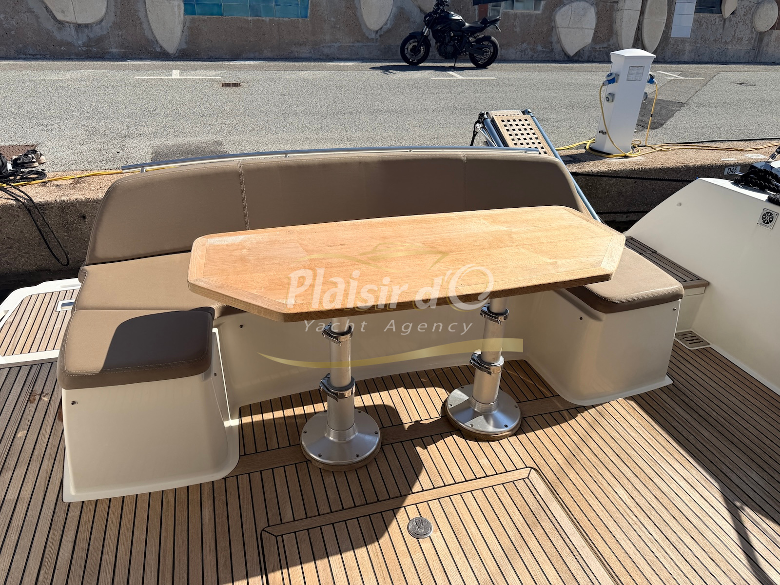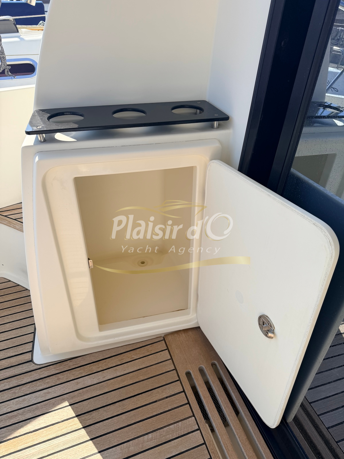 OPTIONS : Passerelle hydraulique, générateur MASE, climatisation réversible, Hard-top électrique, pilote automatique, cockpit et plateforme de bain en teck, lave vaisselle, store électrique, taud de pare brise micro perforé, compteur de chaine, propulseur d’étrave…