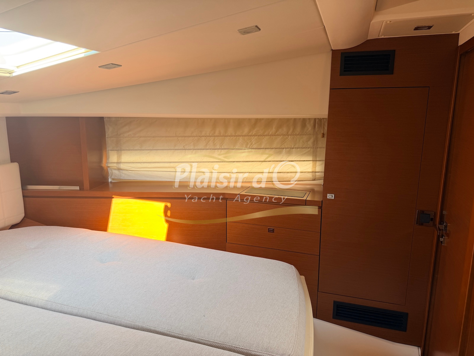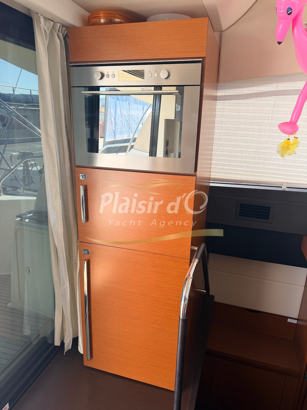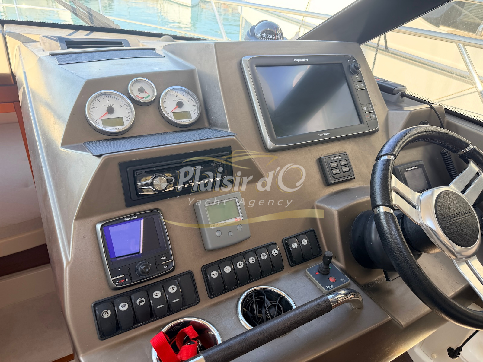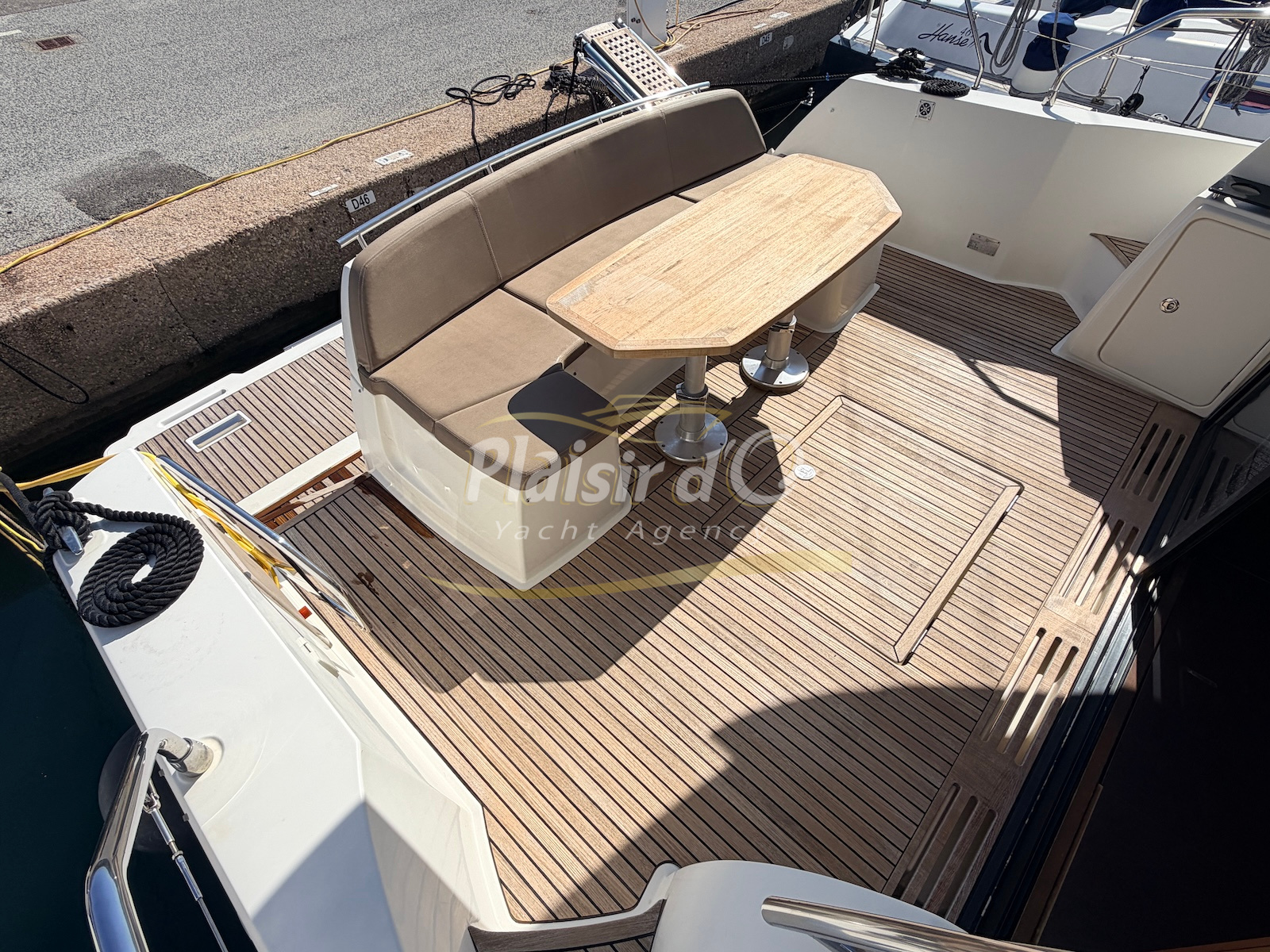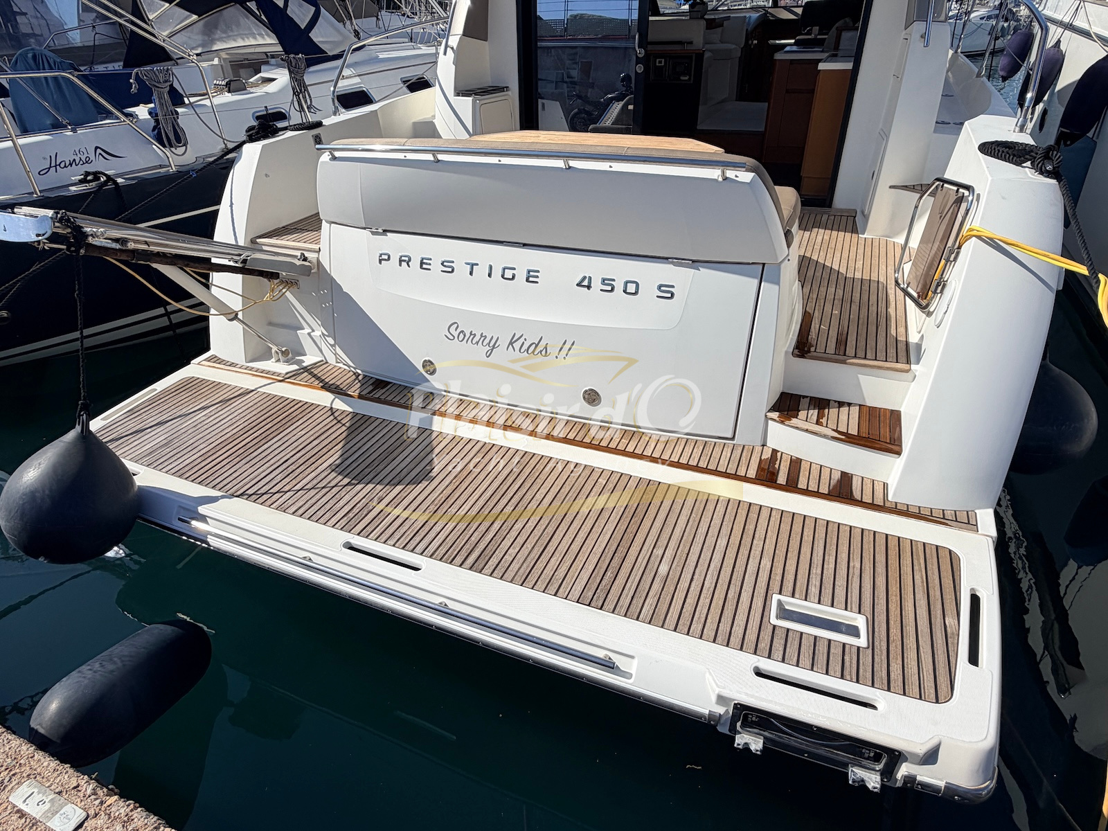 OPTIONS : Passerelle hydraulique, générateur MASE, climatisation réversible, Hard-top électrique, pilote automatique, cockpit et plateforme de bain en teck, lave vaisselle, store électrique, taud de pare brise micro perforé, compteur de chaine, propulseur d’étrave…
