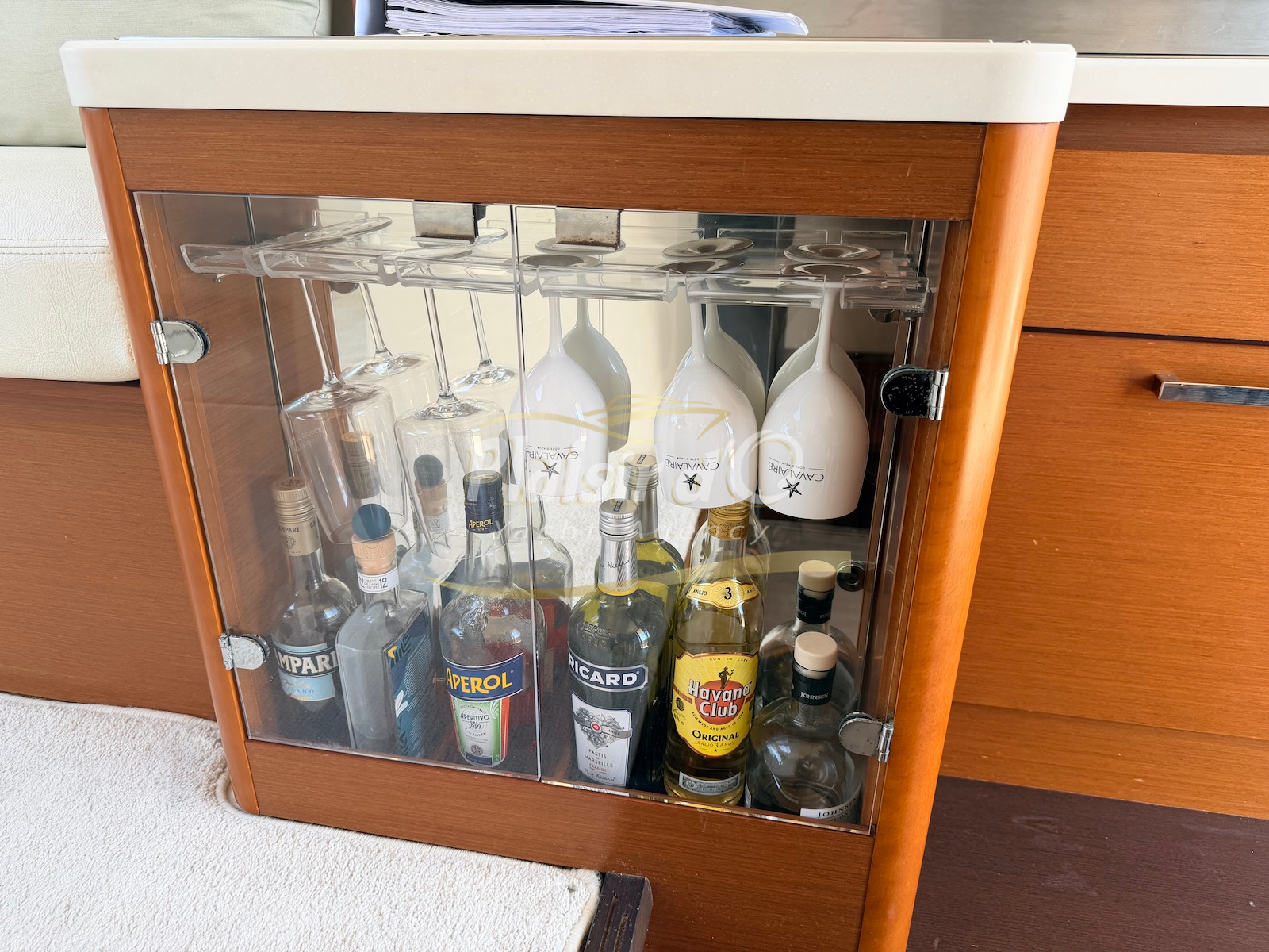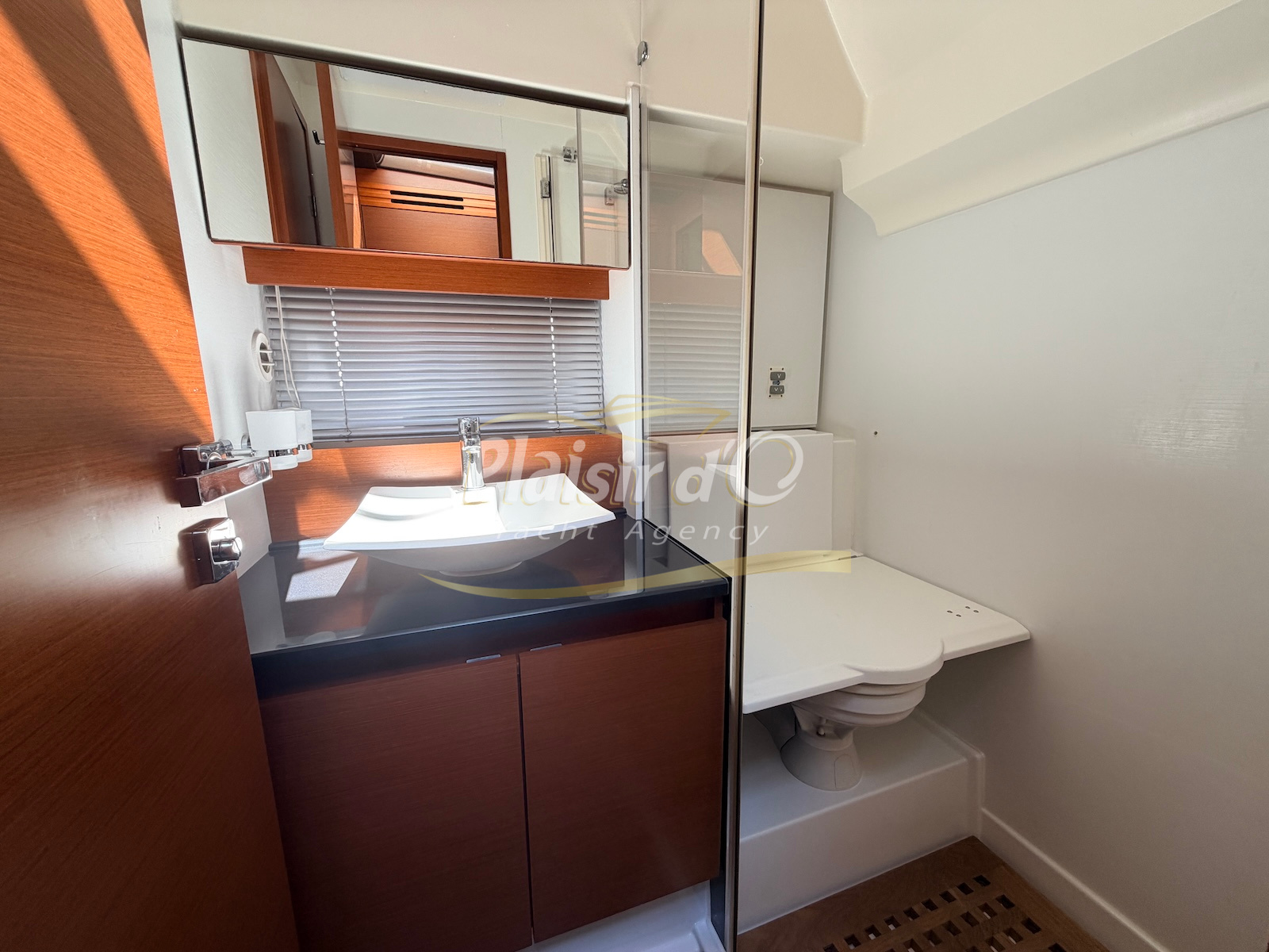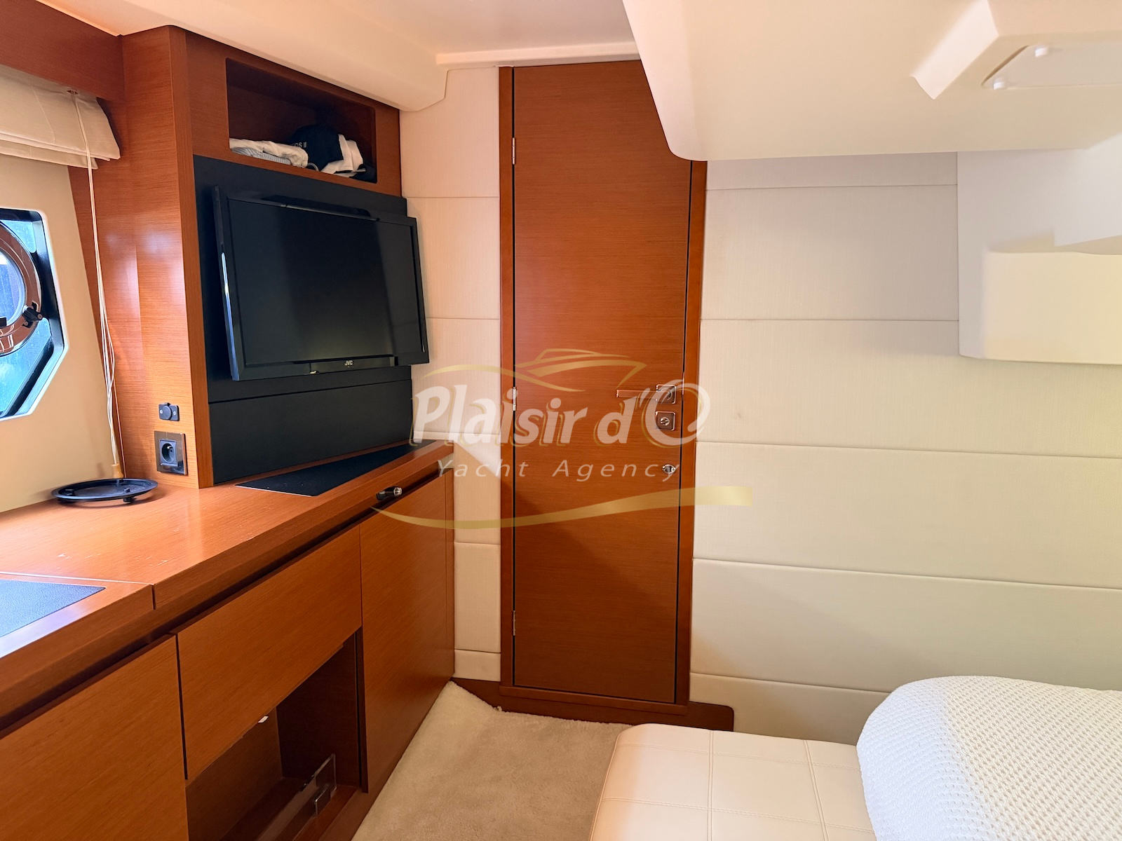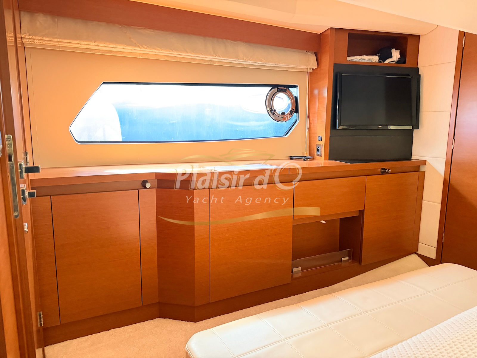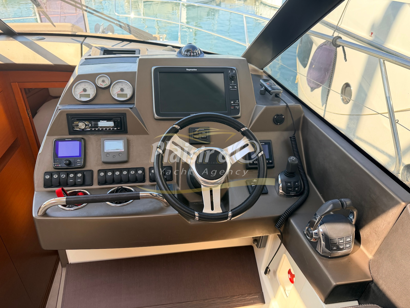 OPTIONS : Passerelle hydraulique, générateur MASE, climatisation réversible, Hard-top électrique, pilote automatique, cockpit et plateforme de bain en teck, lave vaisselle, store électrique, taud de pare brise micro perforé, compteur de chaine, propulseur d’étrave…