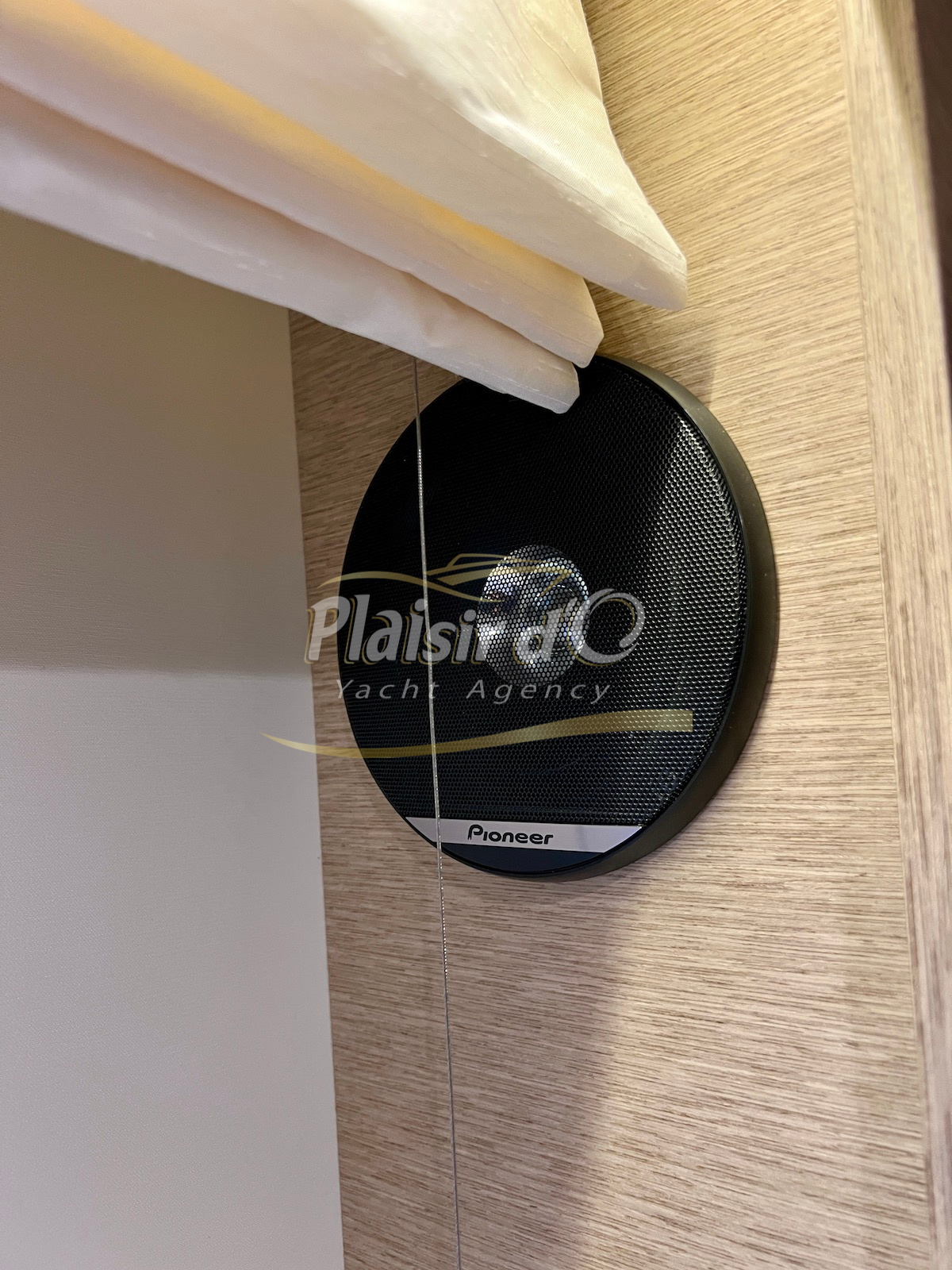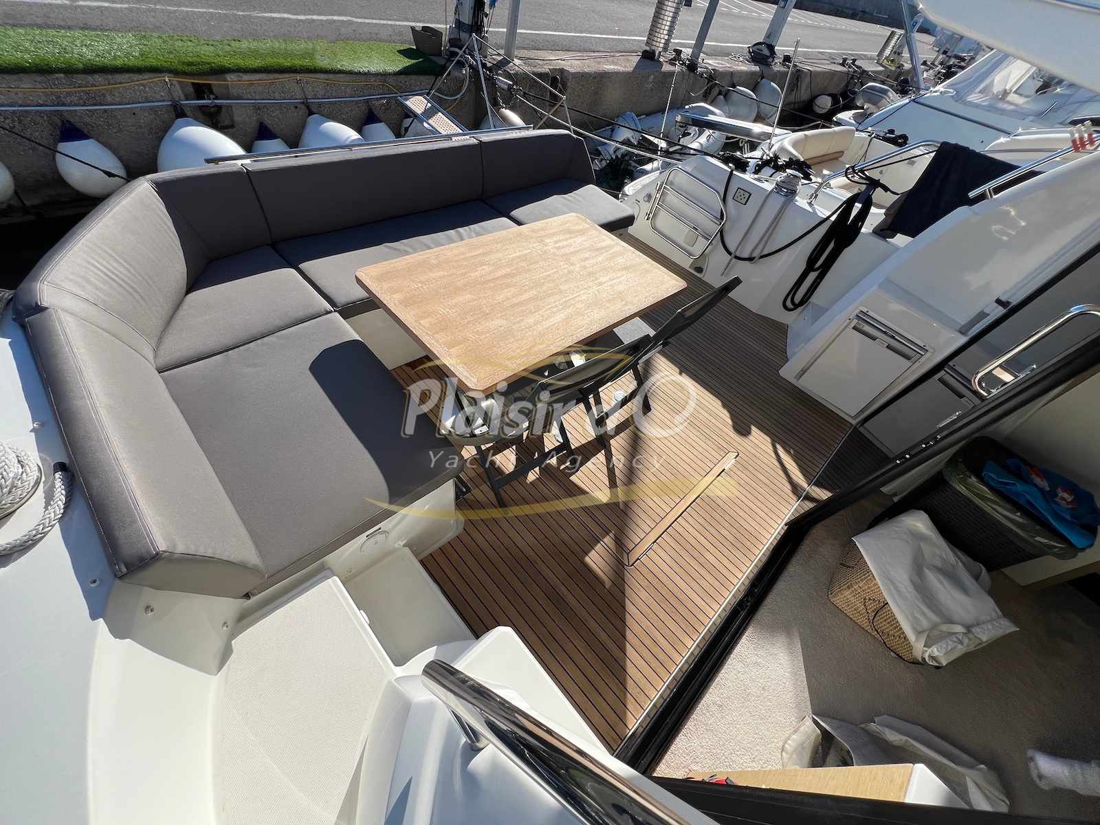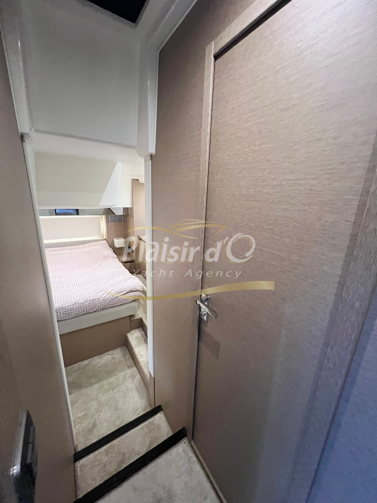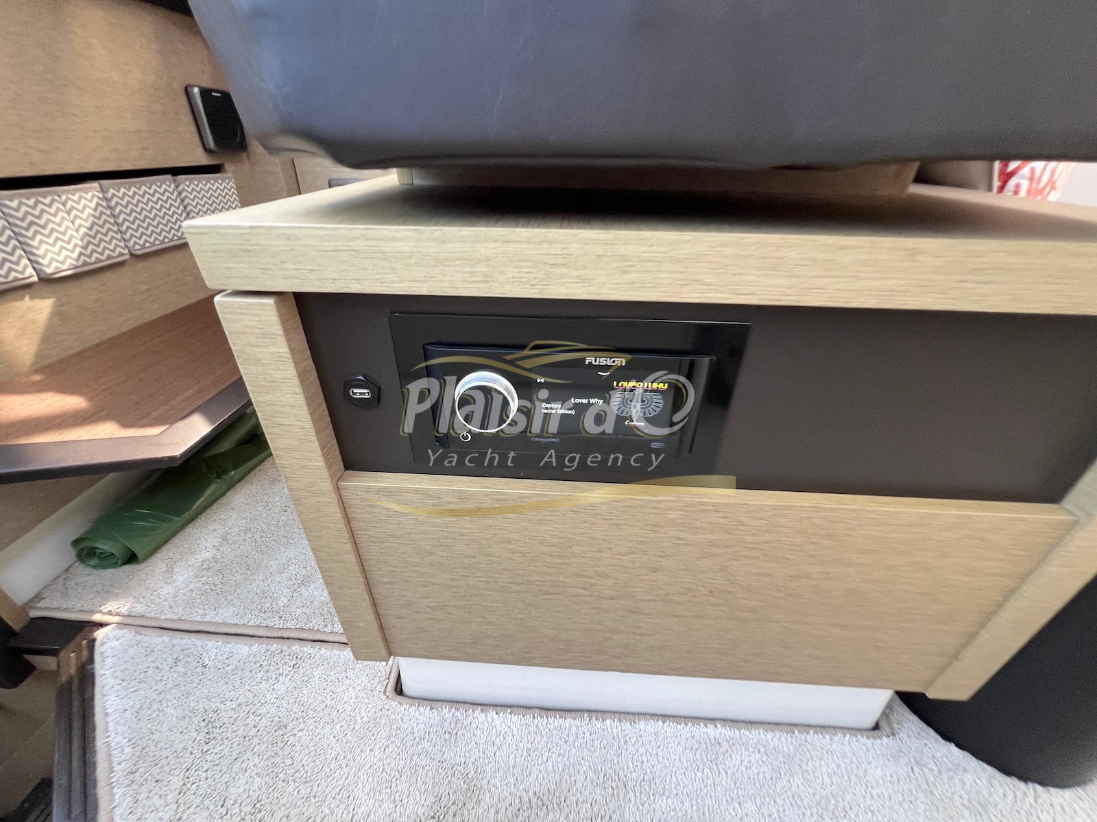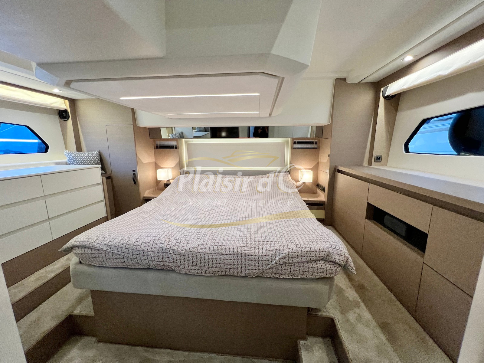 Motorisé par 2 x Volvo IPS 500, totalisant seulement environ 360 heures, il offre une navigation souple, silencieuse et sécurisante, avec joystick de manœuvre et second poste de pilotage au cockpit arrière, idéal pour les accostages.