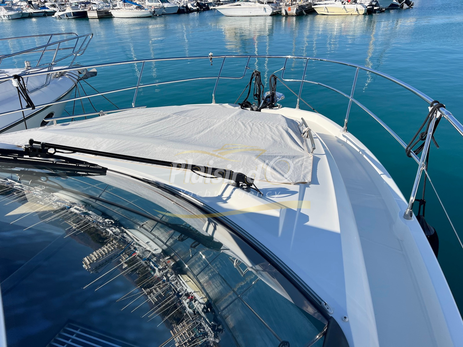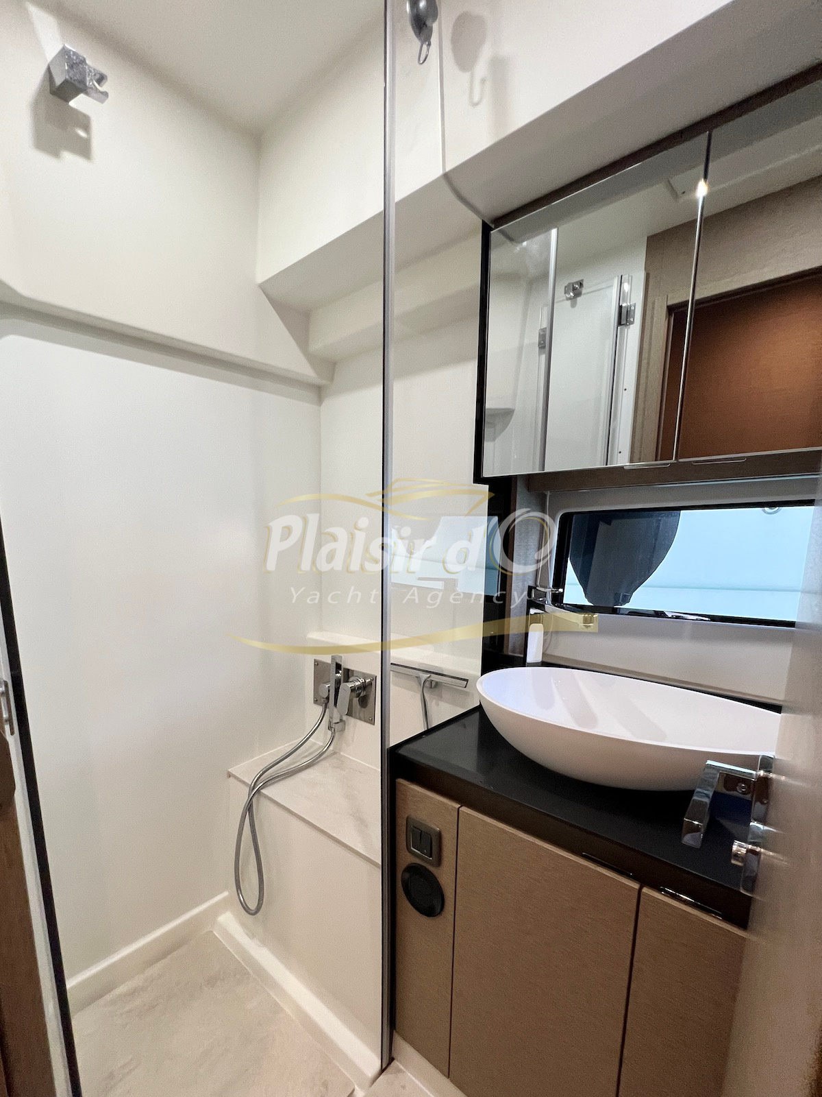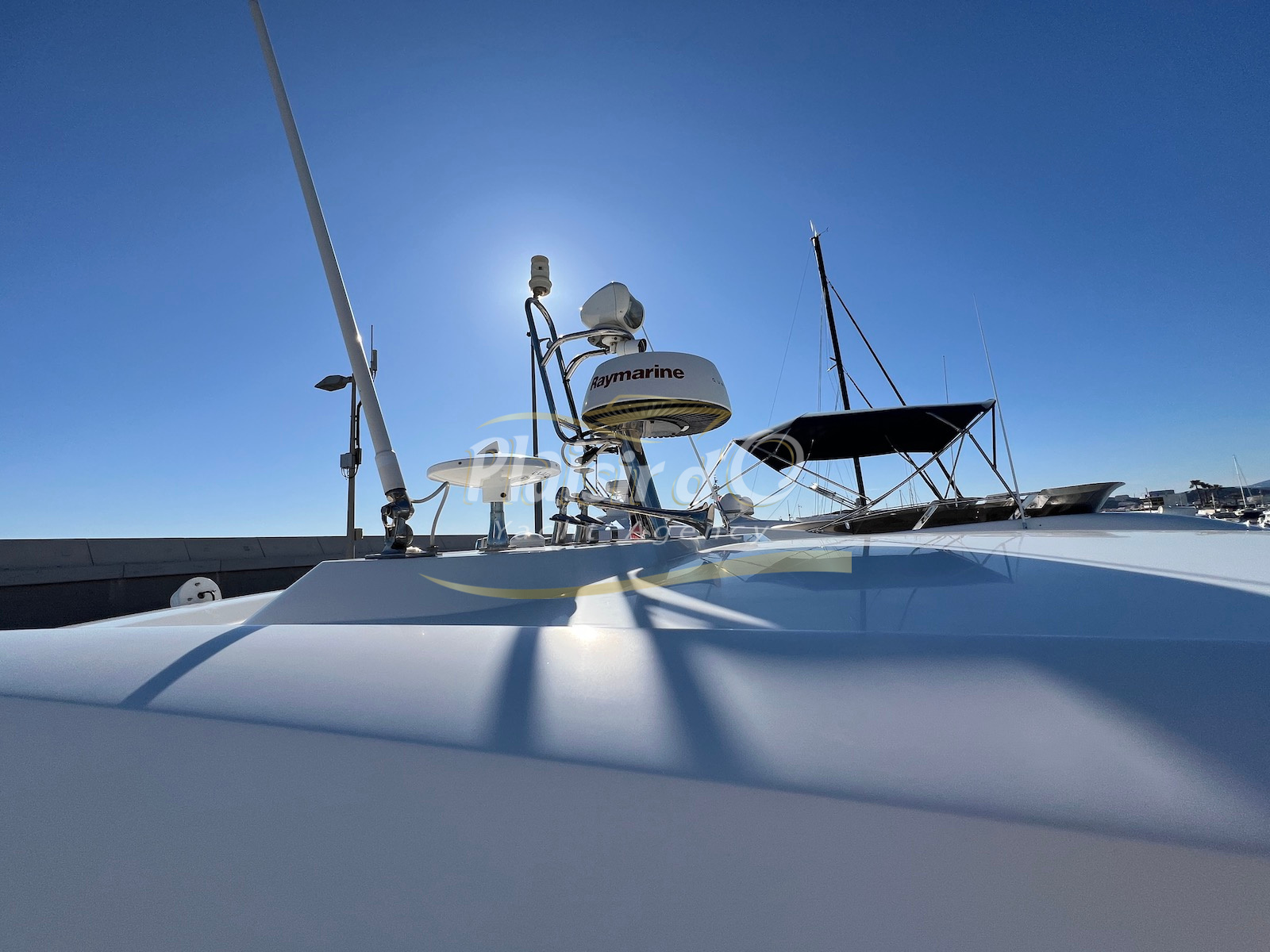 Nombreuses Options : Propulseur, joystick, électronique complète (GPS/traceur/sondeur/pilote auto), compteur de chaine, plateforme de bain Teck hydraulique, Spots sous-marins, climatisation réversible, cuisine entièrement équipée, grand frigo, TV-home cinéma, bains de soleil avant et arrière, WIFI, Caméra, routeur, etc…