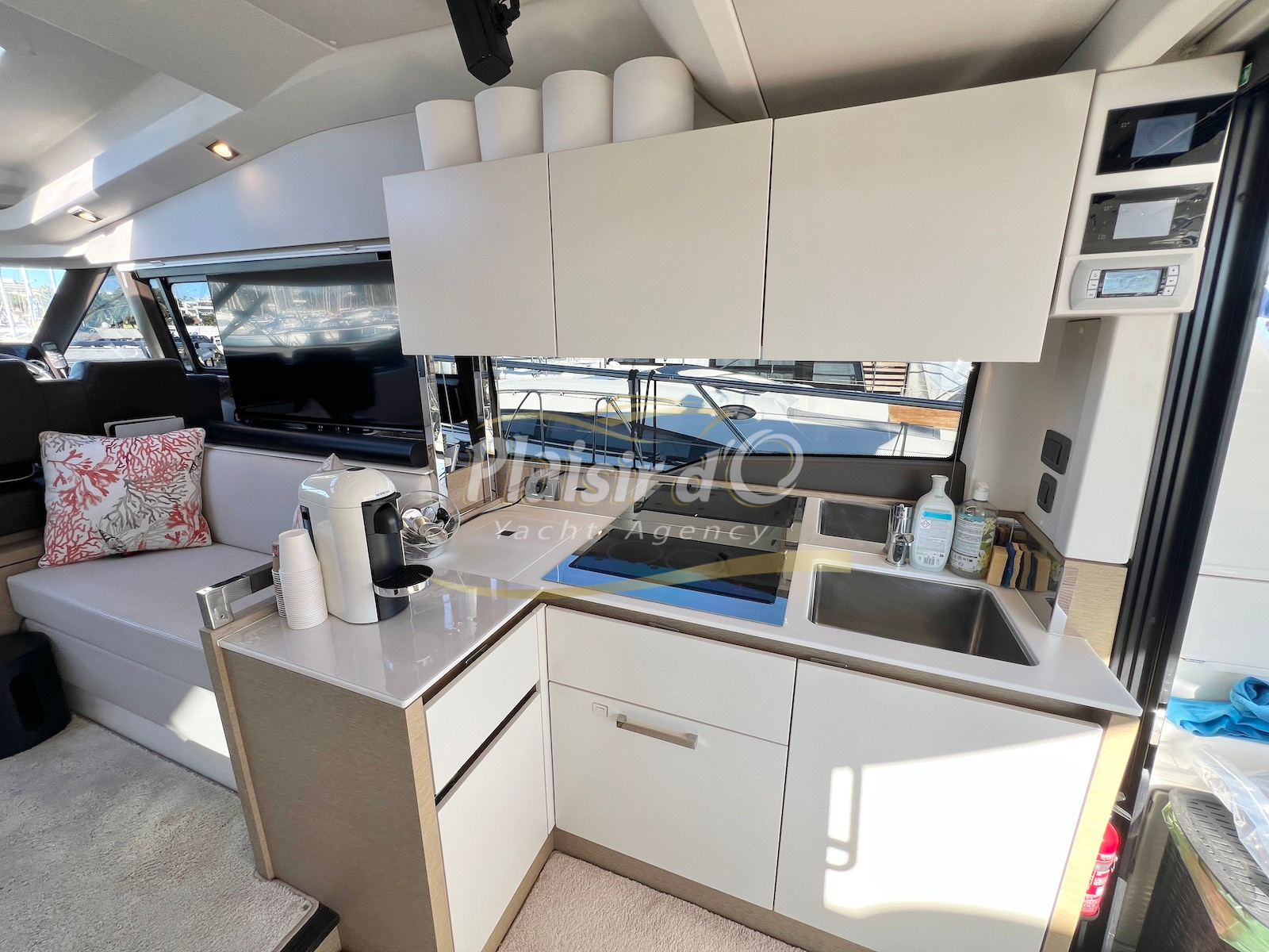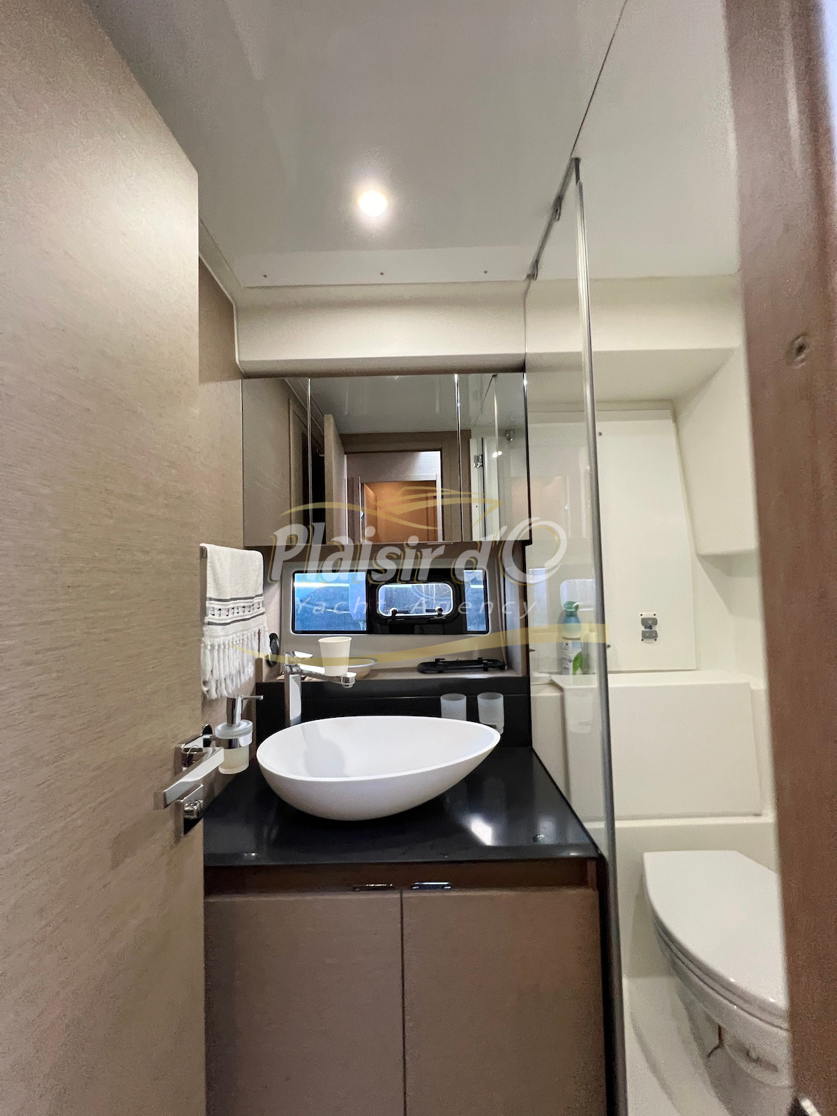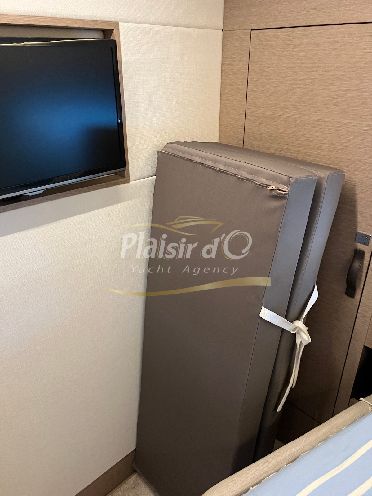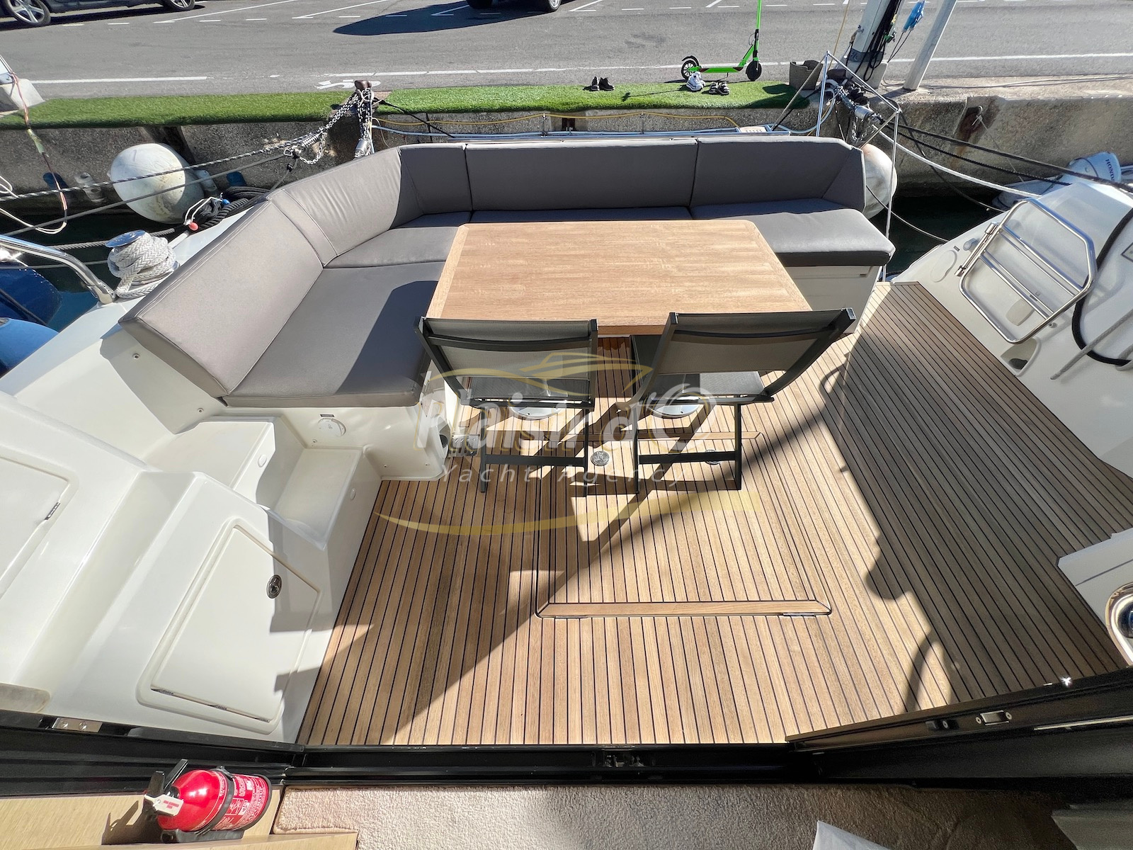 Nombreuses Options : Propulseur, joystick, électronique complète (GPS/traceur/sondeur/pilote auto), compteur de chaine, plateforme de bain Teck hydraulique, Spots sous-marins, climatisation réversible, cuisine entièrement équipée, grand frigo, TV-home cinéma, bains de soleil avant et arrière, WIFI, Caméra, routeur, etc…