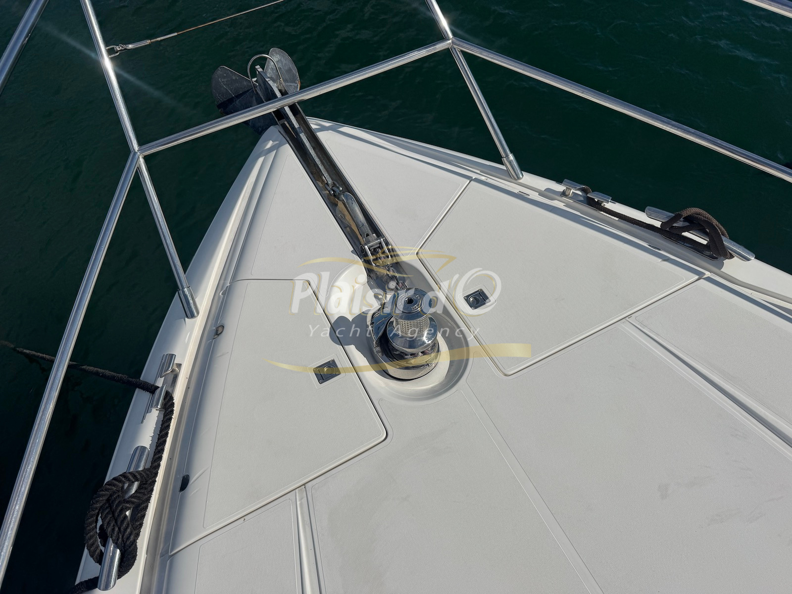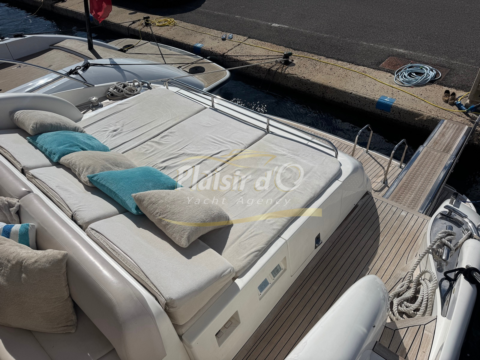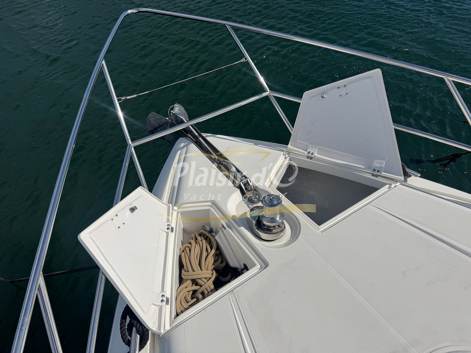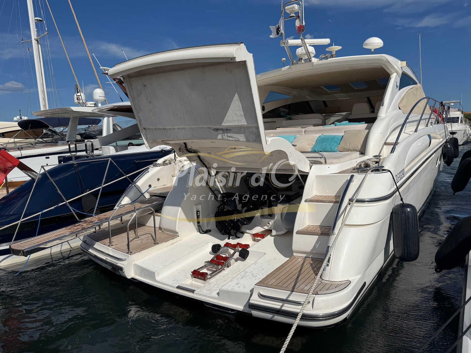 Nombreuses options : motorisation maximale, propulseur d’étrave et de proue, générateur, climatisation réversible, lave-vaisselle, 2 réfrigérateurs, GPS, pilote automatique, VHF, compteur de chaine, flaps, cockpit teck, plateforme de bain teck (neuve), passerelle hydraulique, bains de soleil avant/arrière, plateforme de bain neuve, et annexe rigide avec moteur 9,9cv, garage à annexe avec treuil.