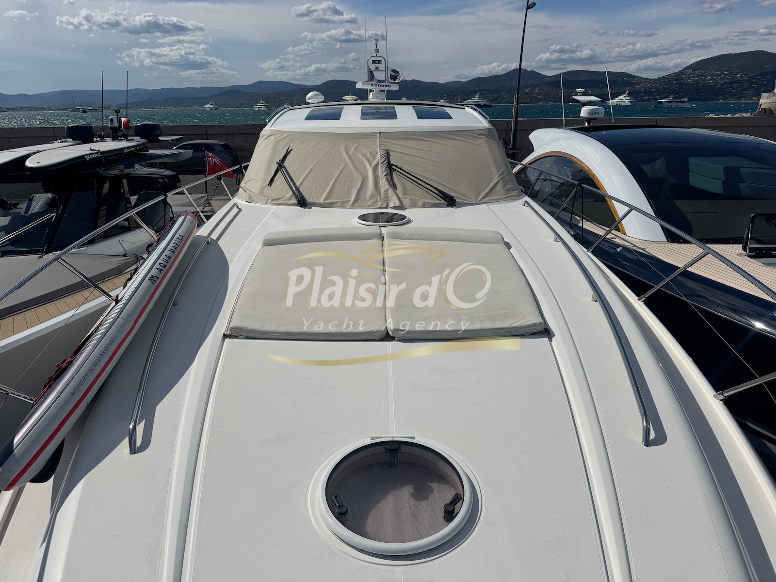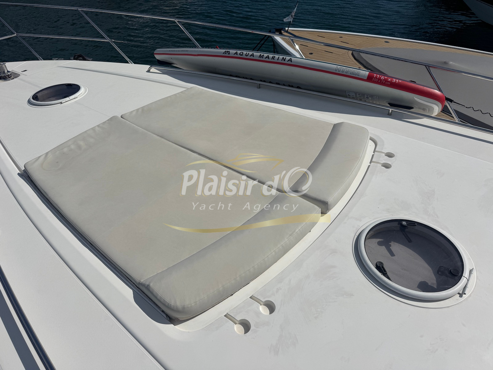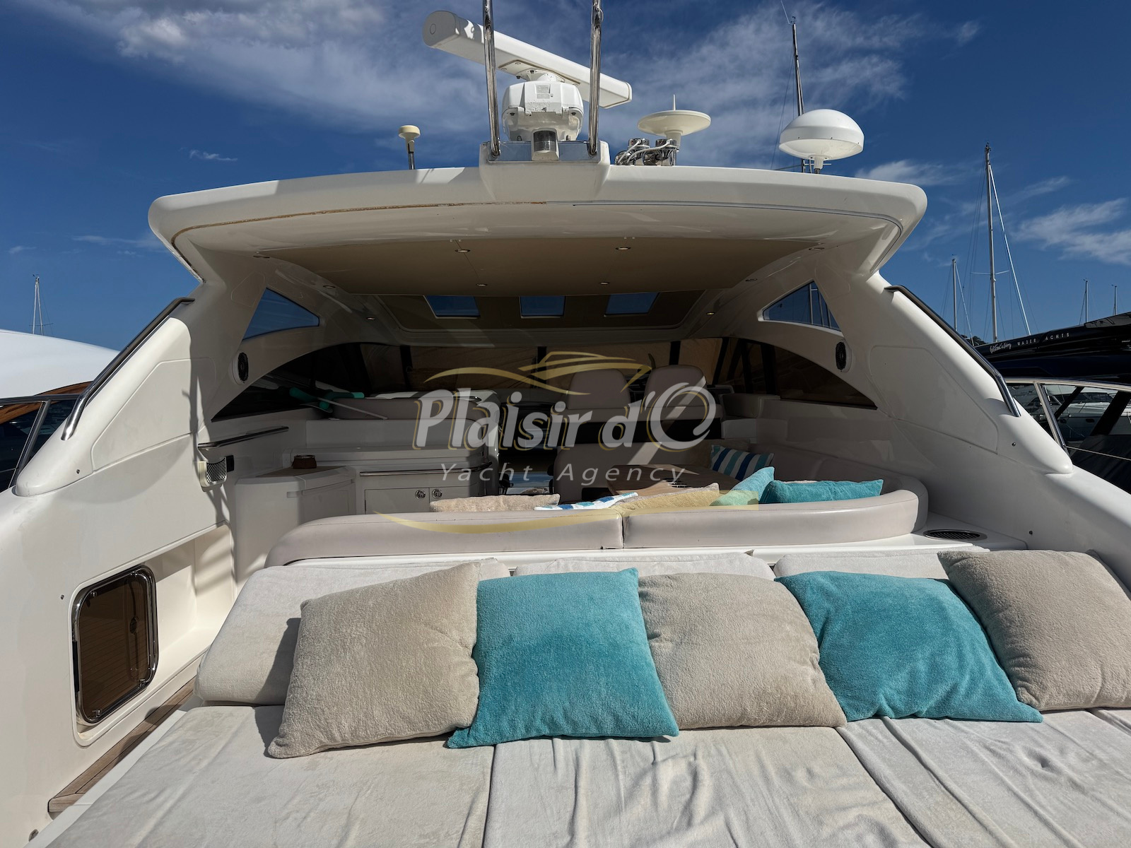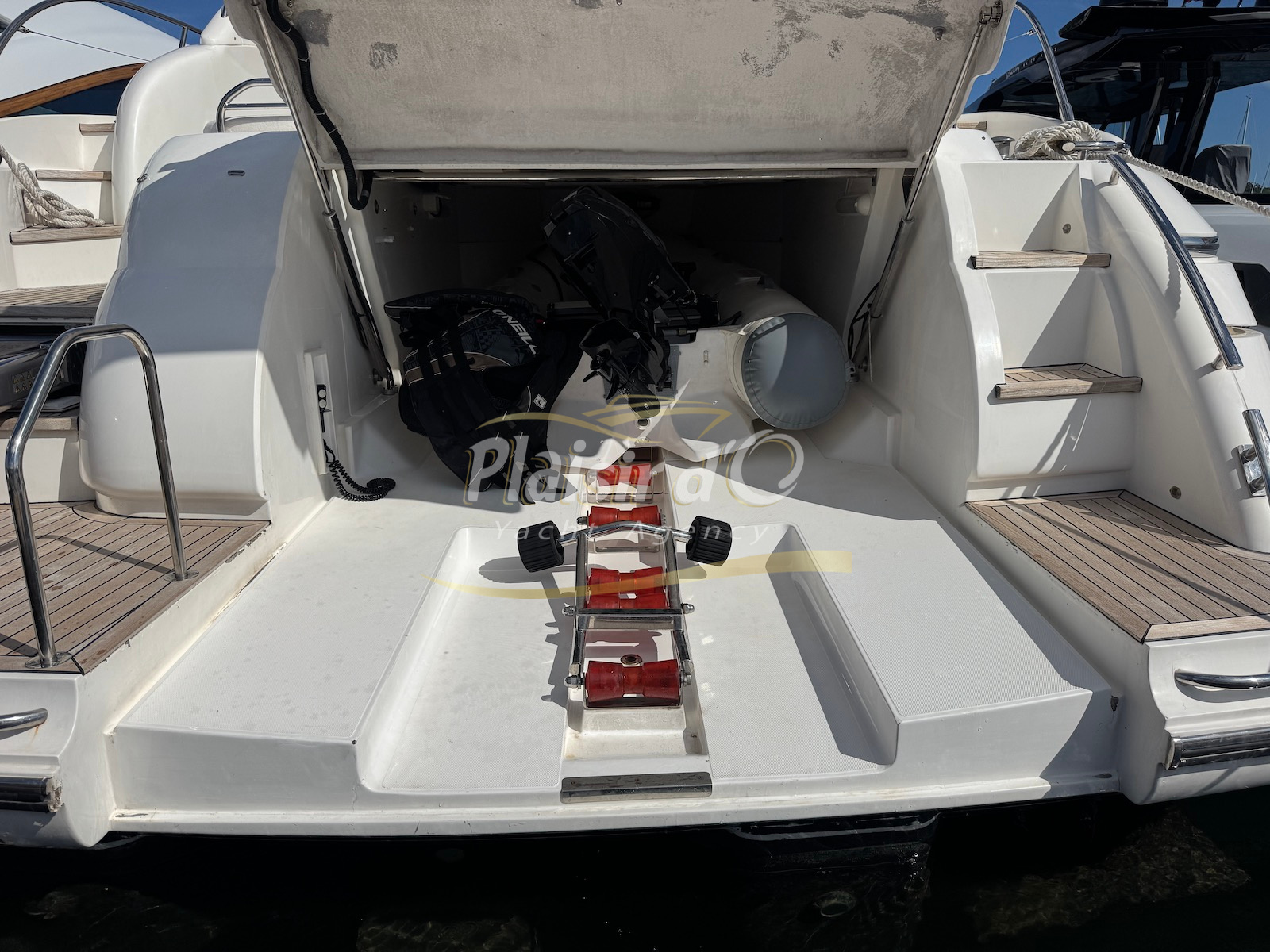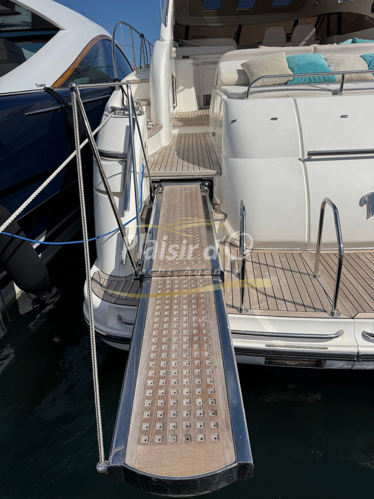 Nombreuses options : motorisation maximale, propulseur d’étrave et de proue, générateur, climatisation réversible, lave-vaisselle, 2 réfrigérateurs, GPS, pilote automatique, VHF, compteur de chaine, flaps, cockpit teck, plateforme de bain teck (neuve), passerelle hydraulique, bains de soleil avant/arrière, plateforme de bain neuve, et annexe rigide avec moteur 9,9cv, garage à annexe avec treuil.