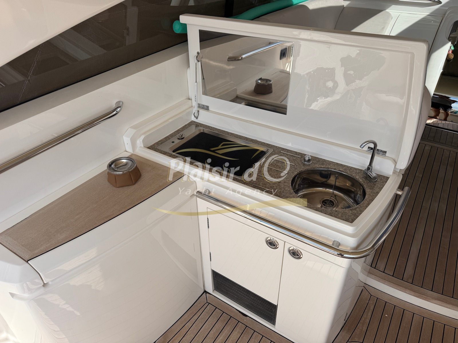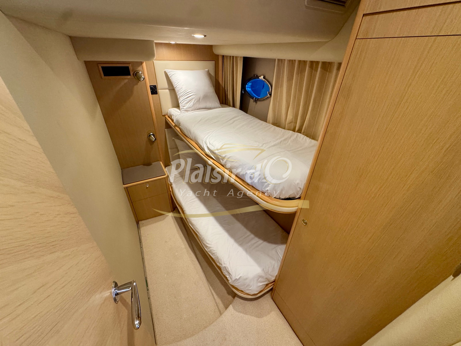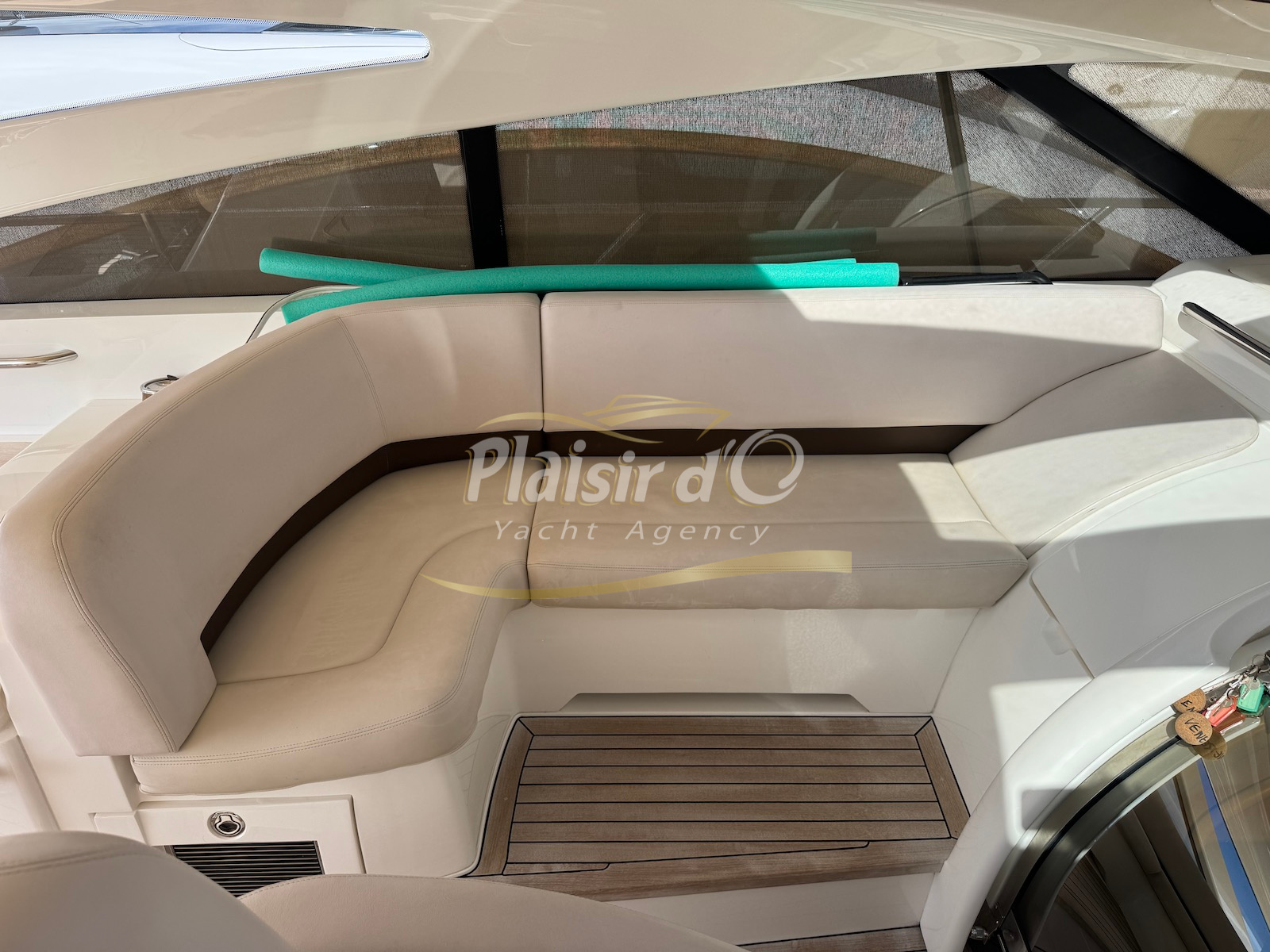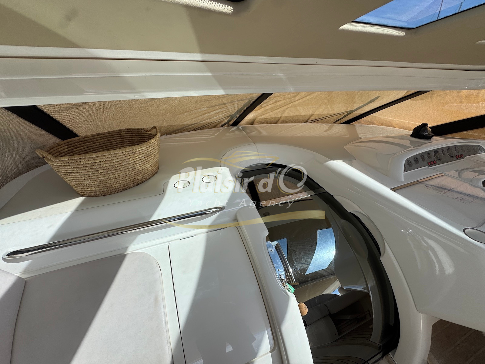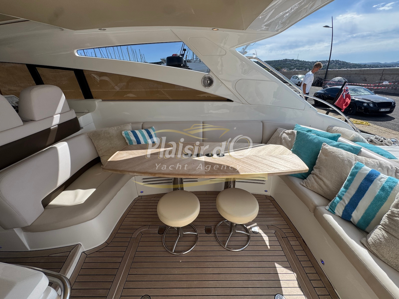 Nombreuses options : motorisation maximale, propulseur d’étrave et de proue, générateur, climatisation réversible, lave-vaisselle, 2 réfrigérateurs, GPS, pilote automatique, VHF, compteur de chaine, flaps, cockpit teck, plateforme de bain teck (neuve), passerelle hydraulique, bains de soleil avant/arrière, plateforme de bain neuve, et annexe rigide avec moteur 9,9cv, garage à annexe avec treuil.